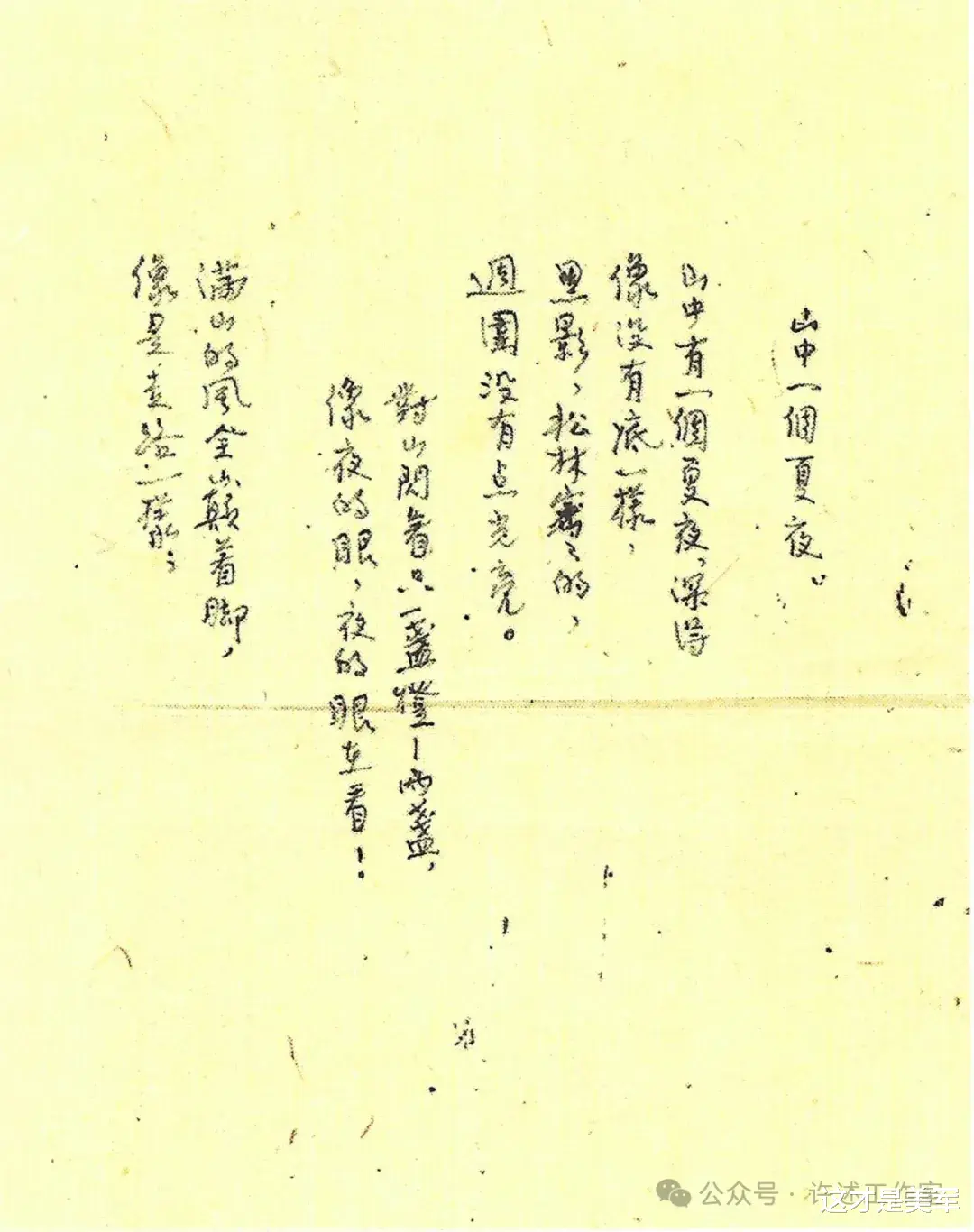 我在北平香山居住期间所写的一首诗《山中的一个夏夜》