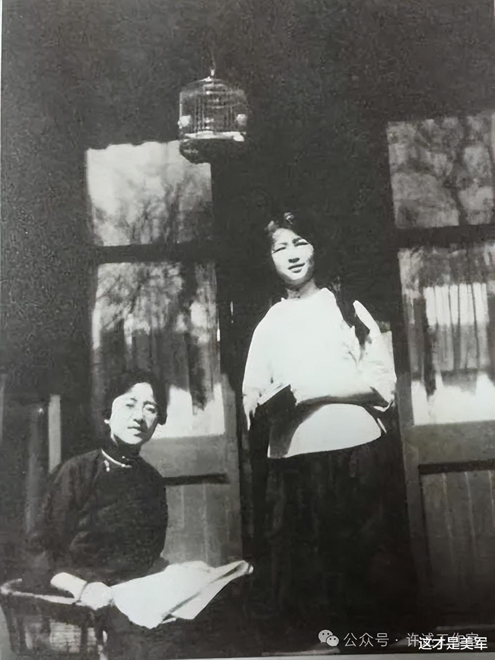18岁,我(右)与表姐王孟瑜在北平景山后街雪池胡同7号家中 摄于1922年4月