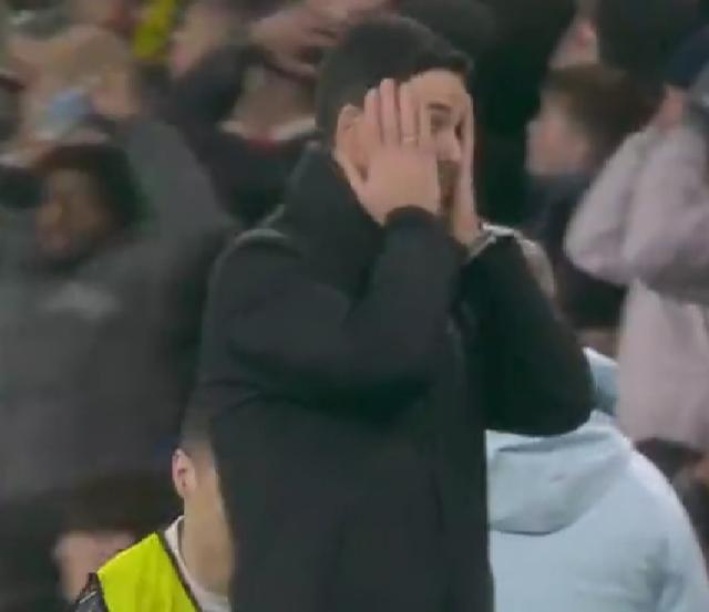阿尔特塔在场边,脸都黑了,估计心里把肠子都悔青了。