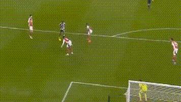带球杀入禁区,面对阿森纳一群后卫,毫不畏惧,一脚射门,虽然被拉亚扑出来了,但戈登眼明手快,补射入网!