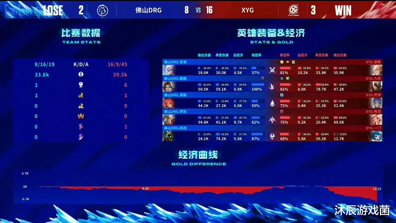 这场比赛XYG对抗路景晚的几场表现都很好,战坦双修、操作到位,夏洛特、姬小满,一把是血C带飞全队,一把是杀穿DRG,输的两场比赛也很尽力,让人有非常大的惊喜。