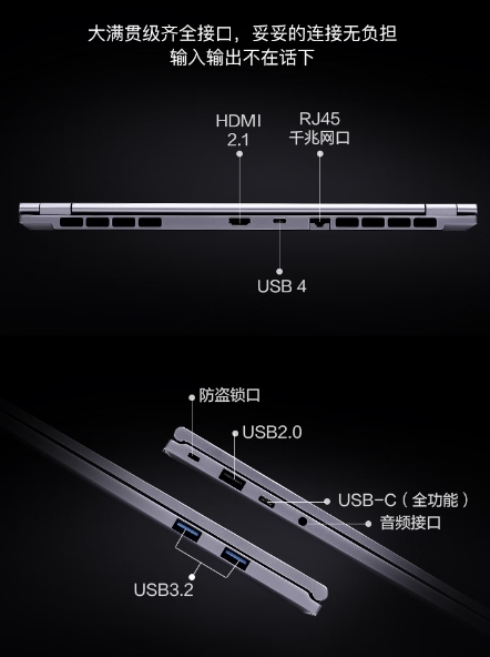 全金属机身设计,实现了1.45kg的轻量化,这个数字背后是对通勤场景的深度洞察。每天挤地铁、赶高铁的人,电脑重 100g 都是负担。虽然轻薄,但它没有为了“轻”牺牲质感:全金属机身,不仅耐刮耐磨,还能减少指纹残留,商务场合掏出来不廉价;长 311mm× 宽 220mm× 高 16.95mm的尺寸刚好能塞进大多数通勤包,这种“轻且有质感”的设计,才是通勤党真正需要的。