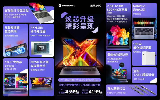 为了满足办公和学习人群对于高性能和轻薄本的需求,机械革命正式推出无界14X轻薄本,真正做到了 “用户思维”,每一个配置都不是为了参数好看,而是精准解决办公人群的痛点。目前正值新机预售阶段,32+1TB配置4199元的价格仅持续一天,1月30日0点正式开抢,心动的朋友千万别错过!
