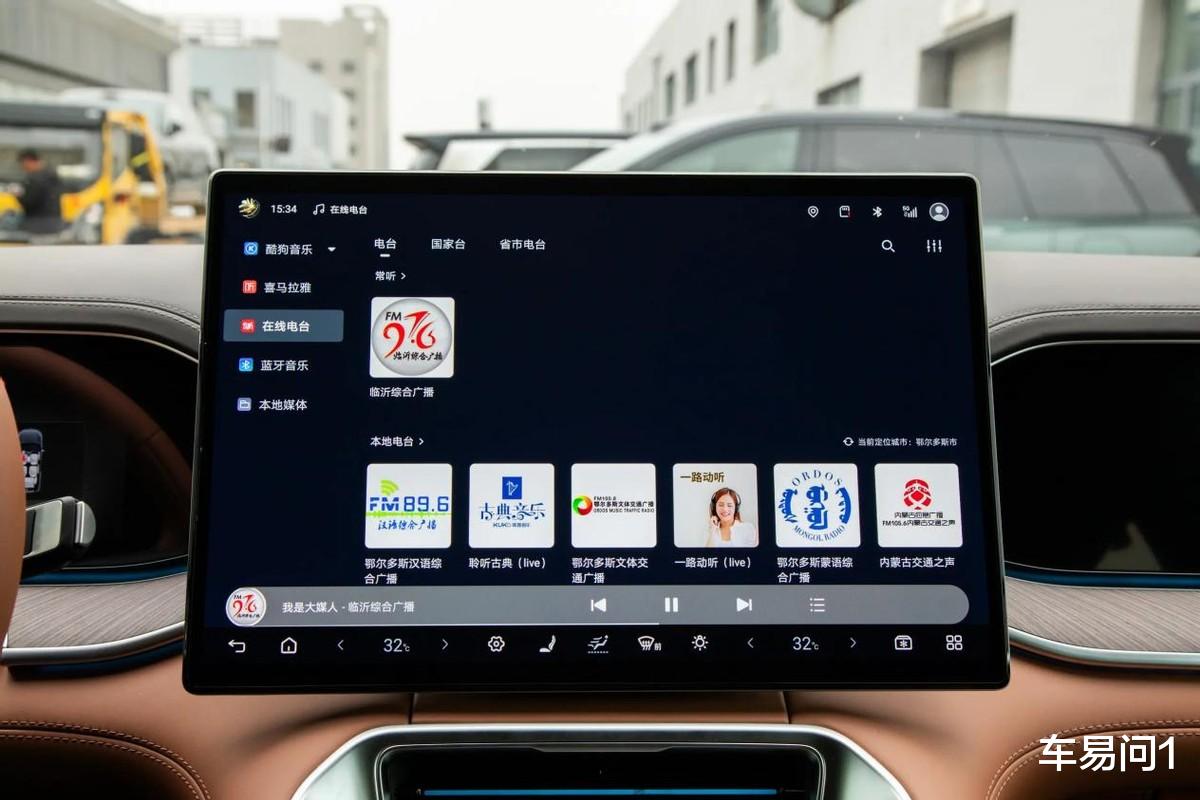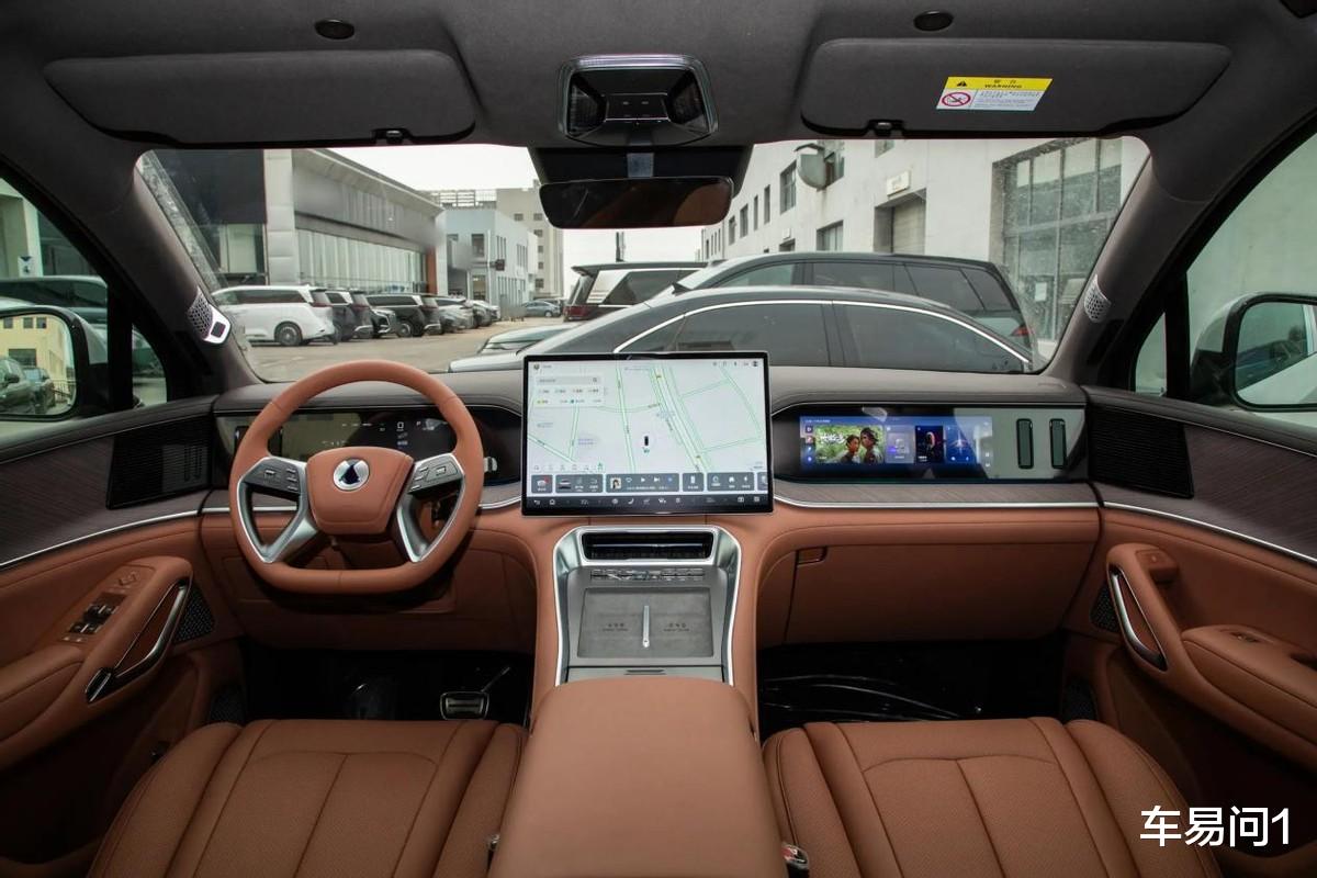 腾势N9 DM的内饰显得简约精致,座舱采用环抱式设计,除了使用了大量皮质材料,在门板内侧和中控台前方等位置运用了木饰纹面板,皮质运动方向盘,带加热、记忆等功能,换挡机构为电子式怀挡,方便驾驶者盲操。车机集成了13.2英寸的彩色全液晶仪表盘、17.3英寸中控屏、13.2英寸副驾娱乐屏、50英寸AR-HUD等智能配置,其中中控屏采用DiLink操作系统,具备5G网络、语音识别、应用下载等功能。其次,车内还配备了车载冰箱、负离子发生器、车内香氛装置等配置,为用户的出行生活带来了方便。