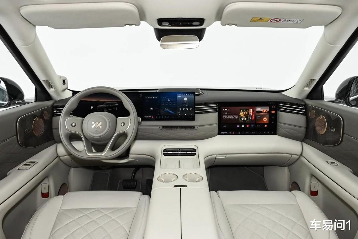 智己LS9的内饰也比较温馨精致,还富有科技感,环抱式座舱前方,配备了皮质多功能方向盘,右边位置是电子式怀挡,中控岛台设置了50W手无线充电面板和带阻尼卡槽的杯架,方便驾乘人使用。智能车机方面,采用27.1英寸的一体屏和15.6英寸副驾娱乐屏,以及21.5英寸的后排液晶屏,其中中控屏内置高通骁龙8295芯片,IM AIOS操作系统,具备5G网络、前两排语音识别、应用下载等功能,还能实现多指飞屏操控。其次,车内还配备了车载冰箱、自动三区空调、多色主动式环境氛围灯等配置,以供驾乘人员使用。