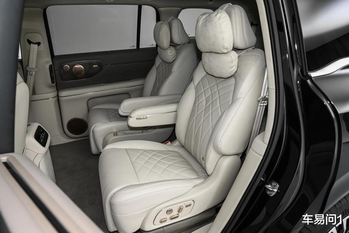而智己LS9的长宽高尺寸分别是5279/2000/1806mm,轴距为3160mm,后备厢基础容量为372L,支持拓展到1030mm。车内为用户提供了Nappa 真皮座椅,同样采用2+2+2布局,前两排座椅为零重力座椅,而且加热、通风、按摩等功能都安排上了,二排配备了小桌板,可临时办公和用餐,前后排都配备了扶手,还安排了杯架,用起来比较方便。