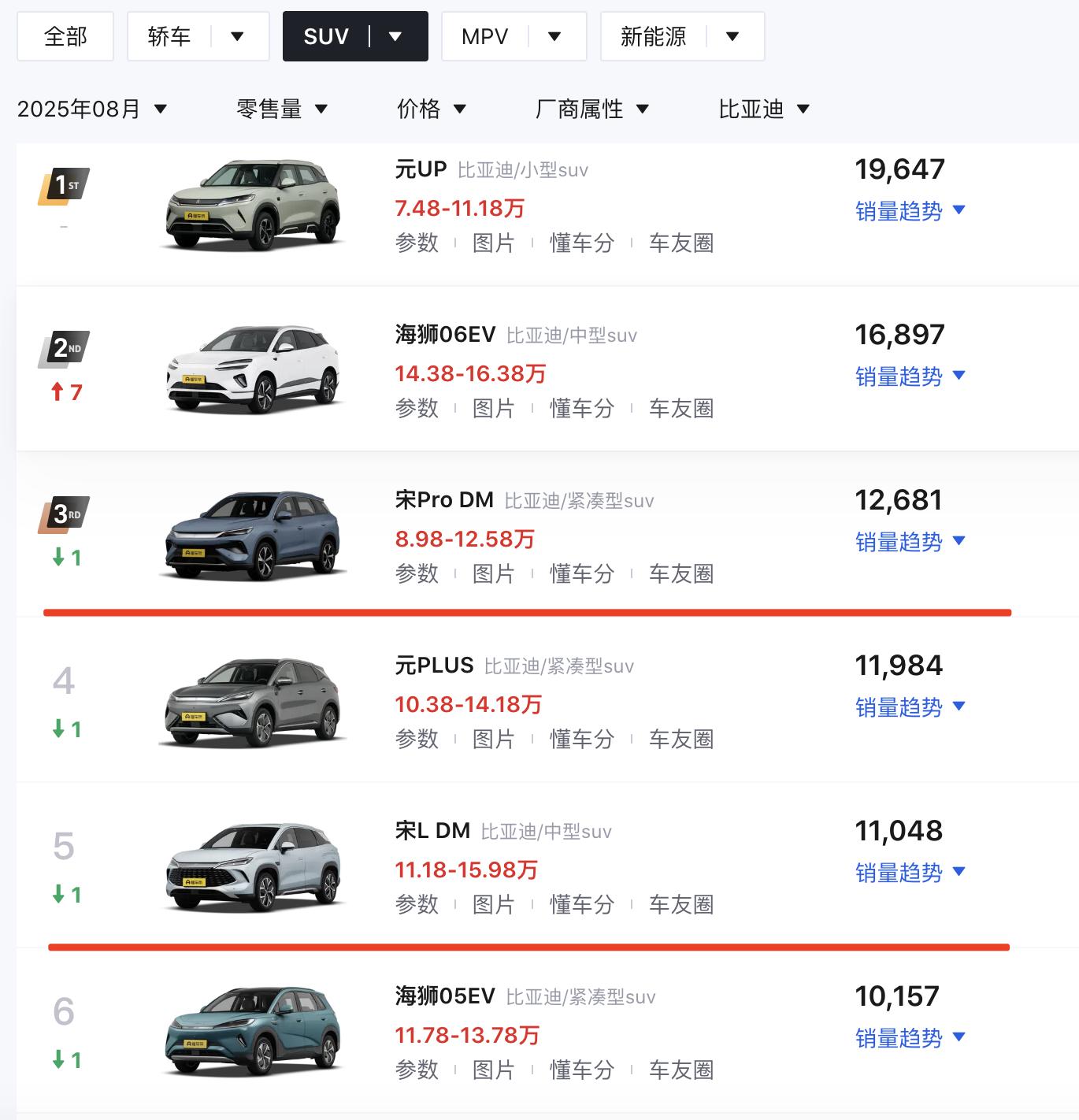 竞品方面,比亚迪宋Pro DM-i定位为插混紧凑型SUV,同级竞品包括吉利银河星舰7 EM-i(指导价9.78万-13.08万元)、奇瑞风云T8(指导价10.39万-15.09万元)等。比亚迪宋L DM-i具有插混中型SUV定位,其同级竞品指向长安启源Q07(指导价12.98万-17.18万元)、奇瑞风云T9(指导价13.29万-18.39万元)等。参考销量,比亚迪宋L/宋Pro DM-i 8月均有着超过1万辆的销量表现,属于当月比亚迪旗下SUV销量前五位车型。有关比亚迪品牌的更多消息,我们将保持关注。
