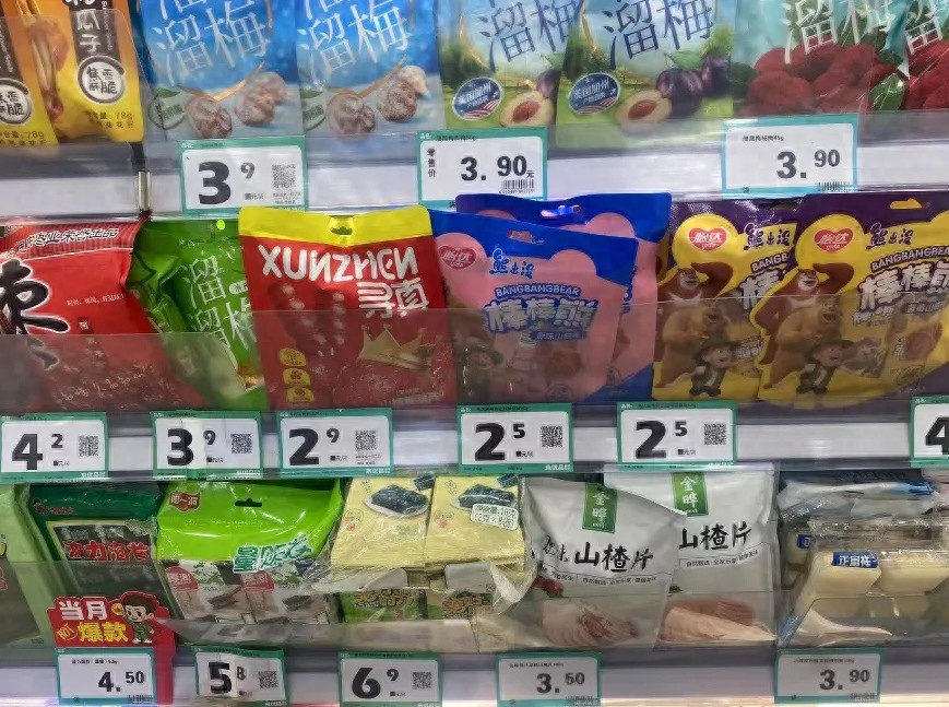 此外,随着当前大型连锁超市的变革,也在影响溜溜梅销量和毛利率。河南某家食品的大客户经理胡帅表示,一方面,因永辉在全国多地推行胖东来调改店,散称食品货架专区正在不断缩小,公司和永辉合作的某款散称食品月销售额从几十万暴跌到几万。