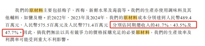 另一方面,国内梅子类水果成熟期集中在每年5月—8月,但不管是水果酸度/甜度和当年降水量直接相关,或是全年供应链需深度加工,生成过程均需使用食品添加剂。随着当前消费者对食品添加剂的担忧,很容易影响终端销量。
