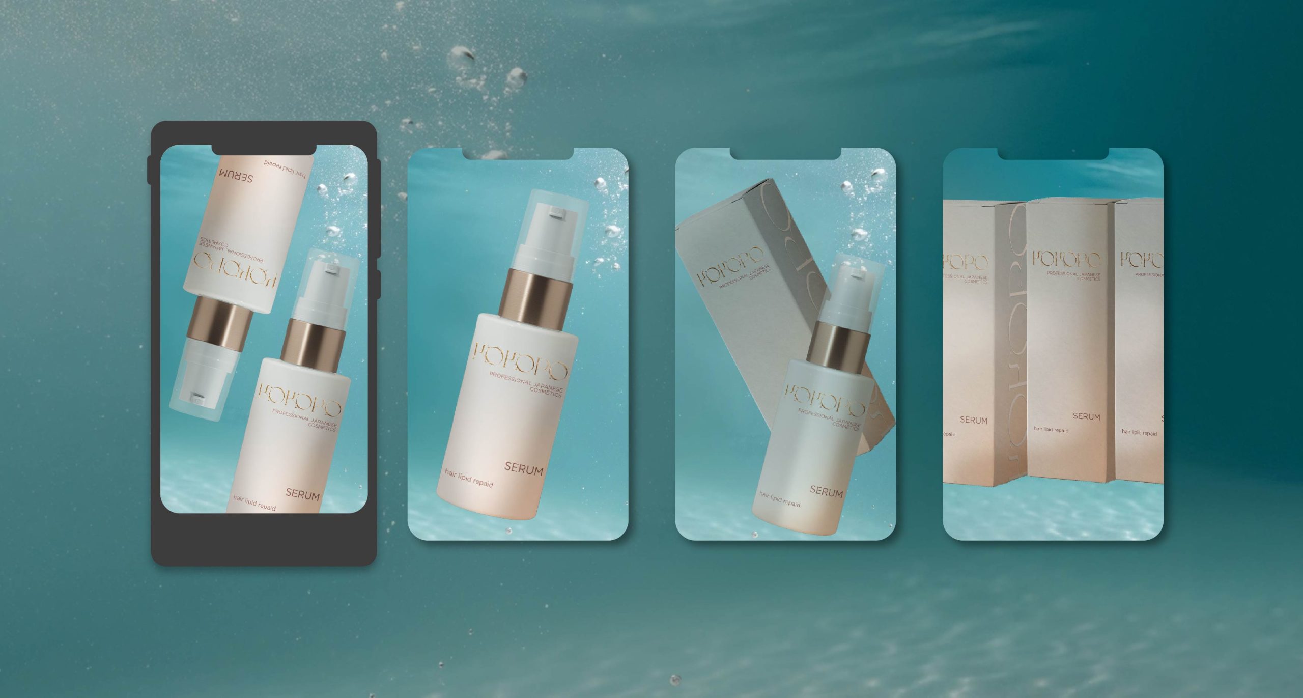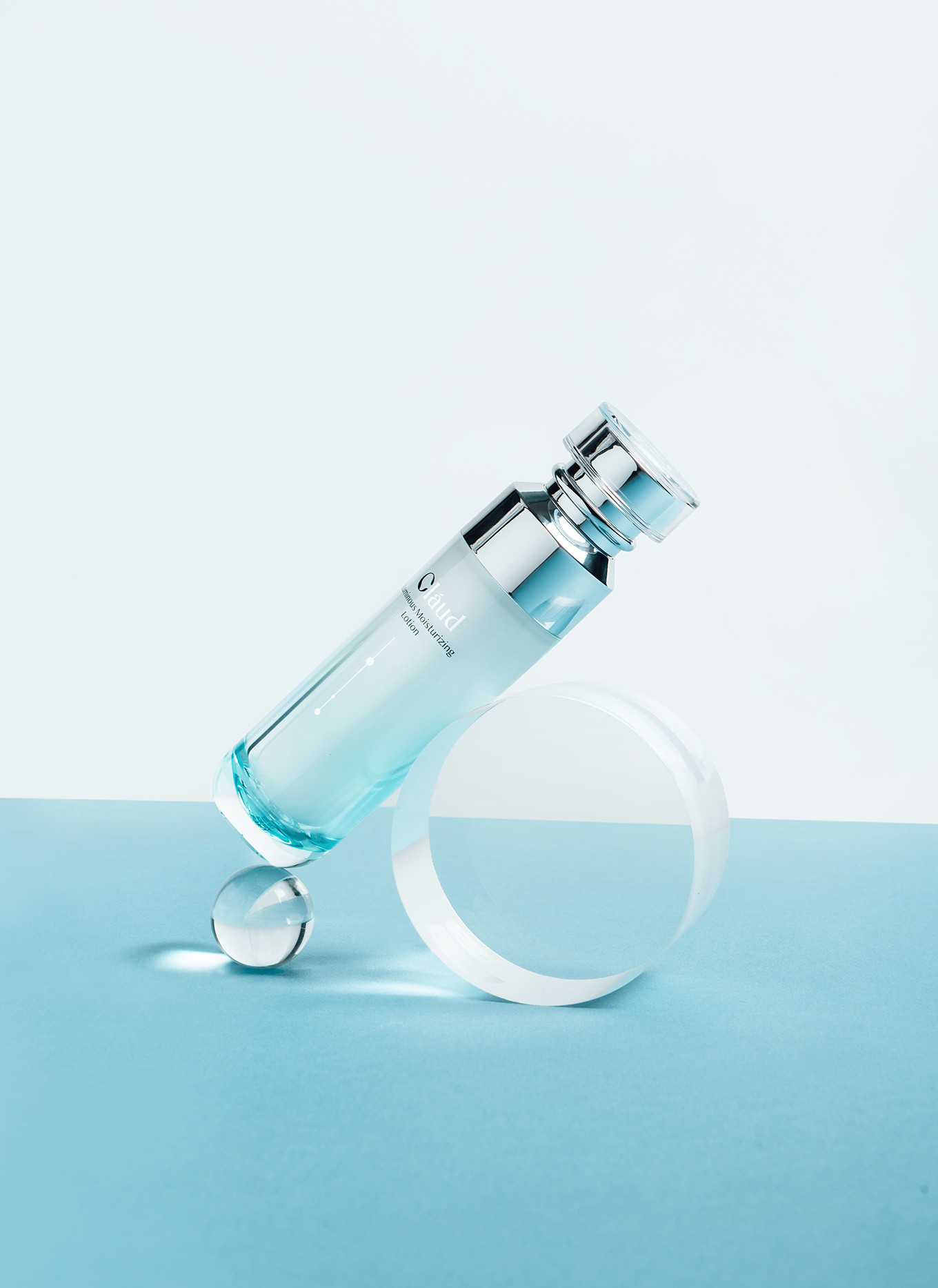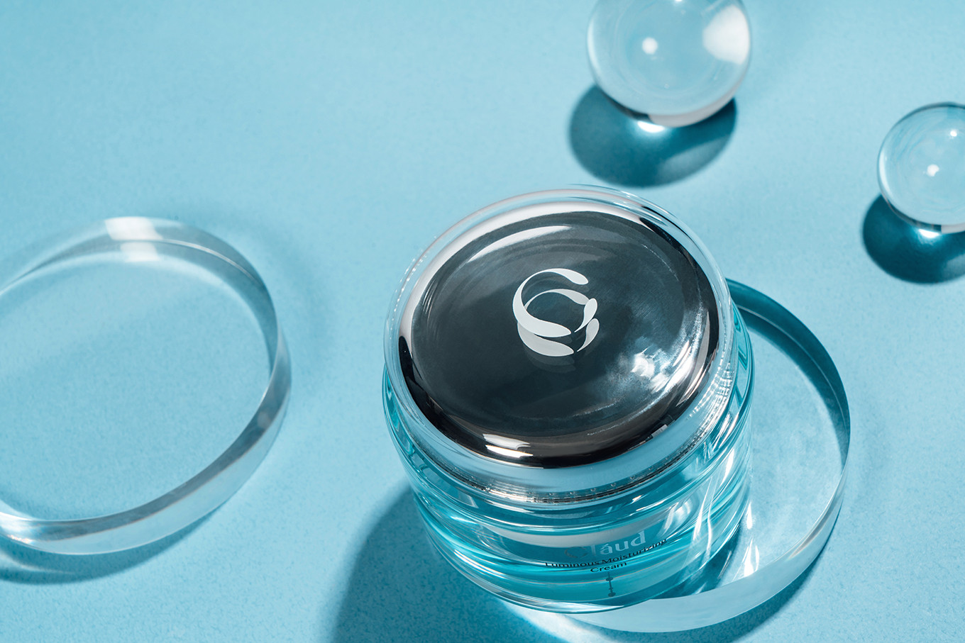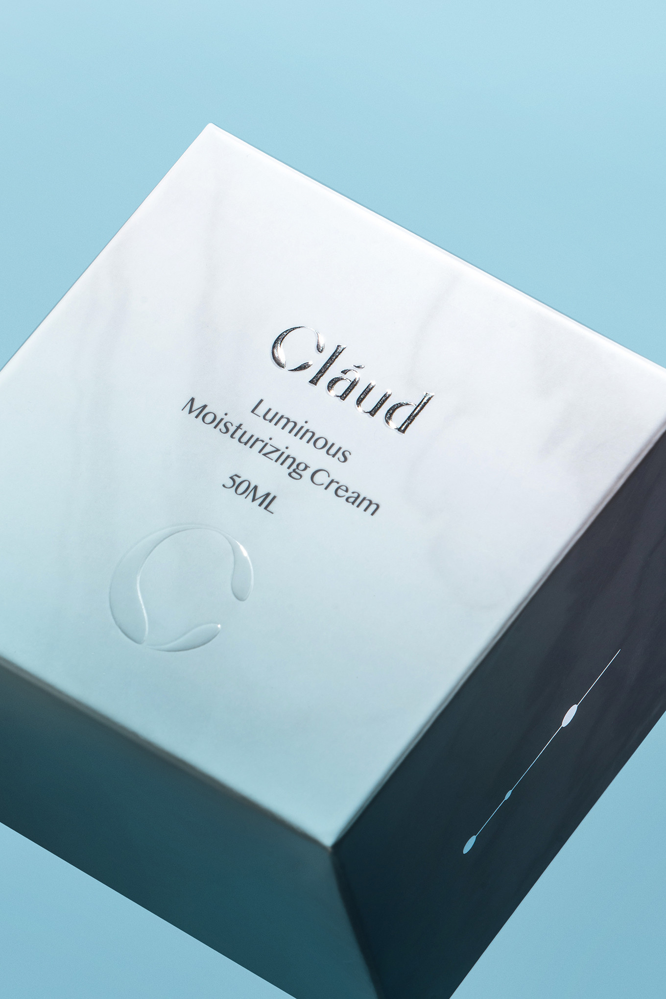 如果KOKORO是低调贵族,Claud就是水中精灵!浅蓝到透明的渐变盒身,搭配若隐若现的水纹纹理,仿佛把一瓶“流动的水光”塞进包装里。产品置身水波纹背景中,瞬间让人脑补“爆水霜”“沁润精华”的清凉触感。长方体盒身圆润收边,既保留简约线条,又弱化了棱角的冷硬感,像极了护肤品该有的温柔脾气。这设计,简直是“视觉降温神器”,夏天看到都想囤一打!