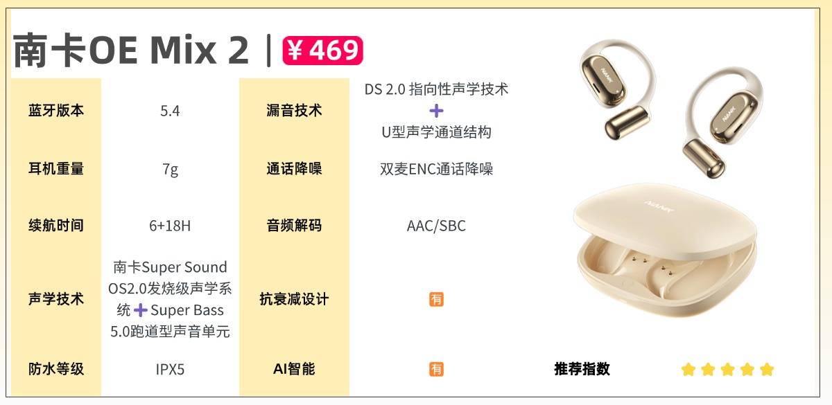 要说当前开放式耳机的综合实力,深耕声学领域多年的南卡无疑位居行业前列。凭借十多年声学研发积淀,南卡早期即为多家国际耳机品牌提供技术方案,声学功底深厚,被业界视为真正懂声音的专业品牌,长期稳居各类中高端榜单。