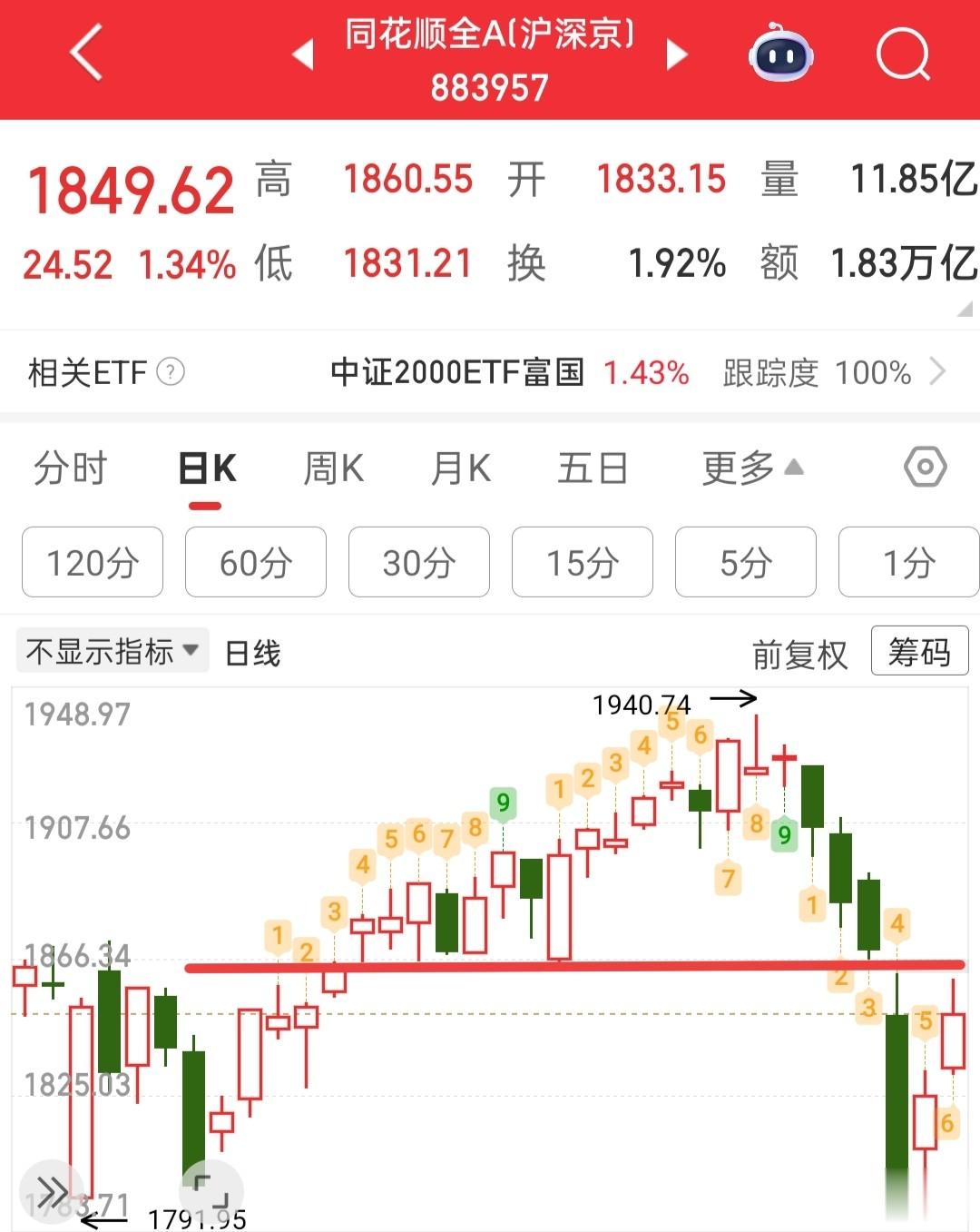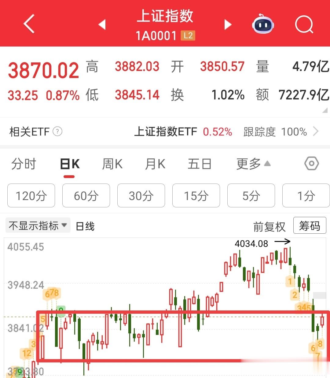我并不想啰嗦大盘,这个早就失去了参考的价值,我们看它,只是想知道他接下来会怎么走,在哪里能形成底部,其他就不用看他了,目前大盘也到了箱体上沿,它离缺口还有一定的距离呢!明天很可能要低开了!所以我们只需要看全A,看我上周六给你们画的那个图,多漂亮