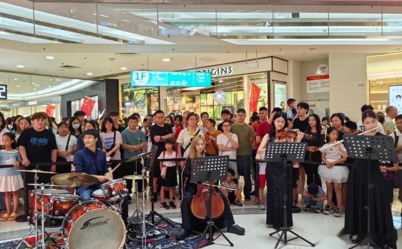 正佳广场内上演流动的艺术,市民游客在随机空间遇见乐器联奏。
