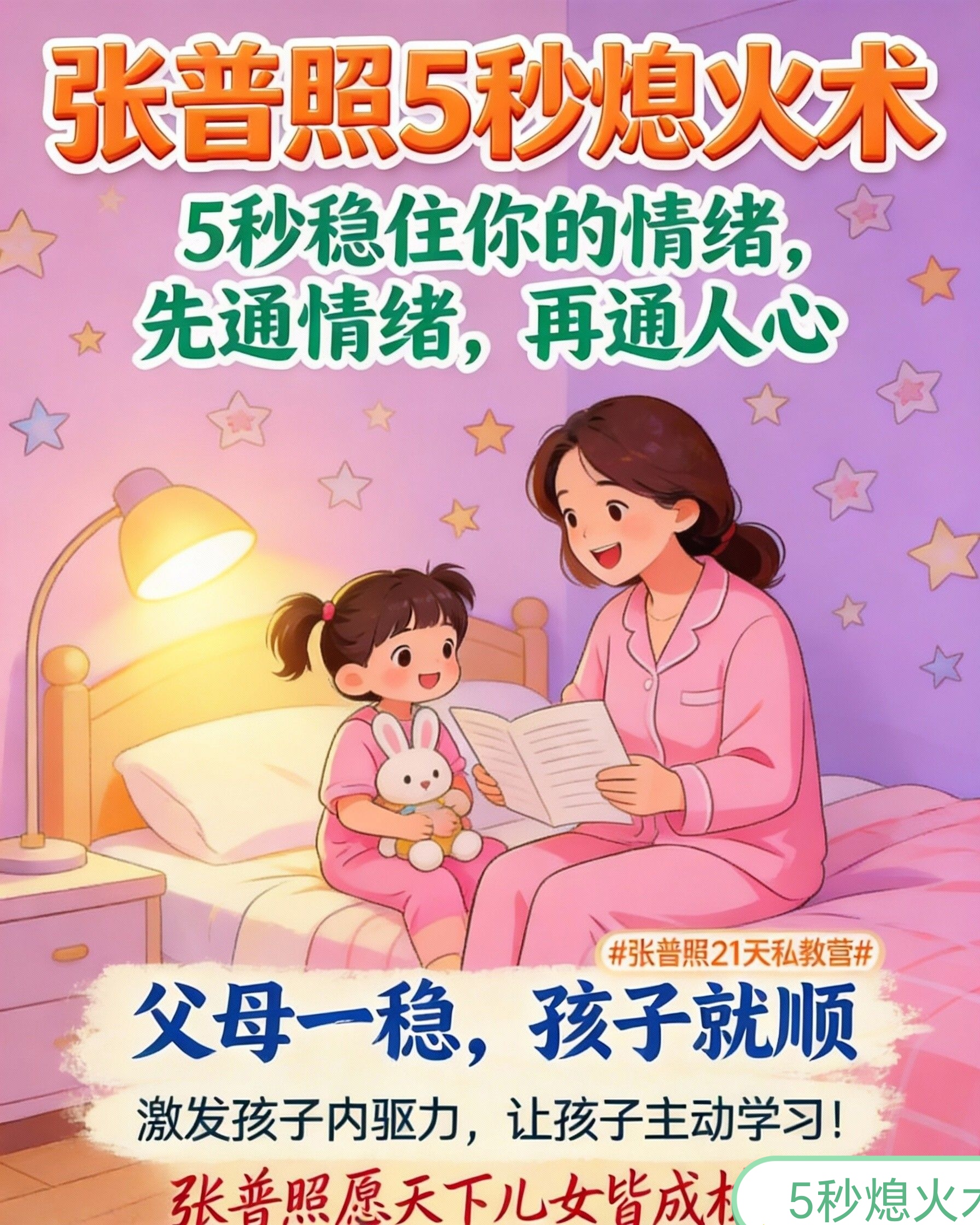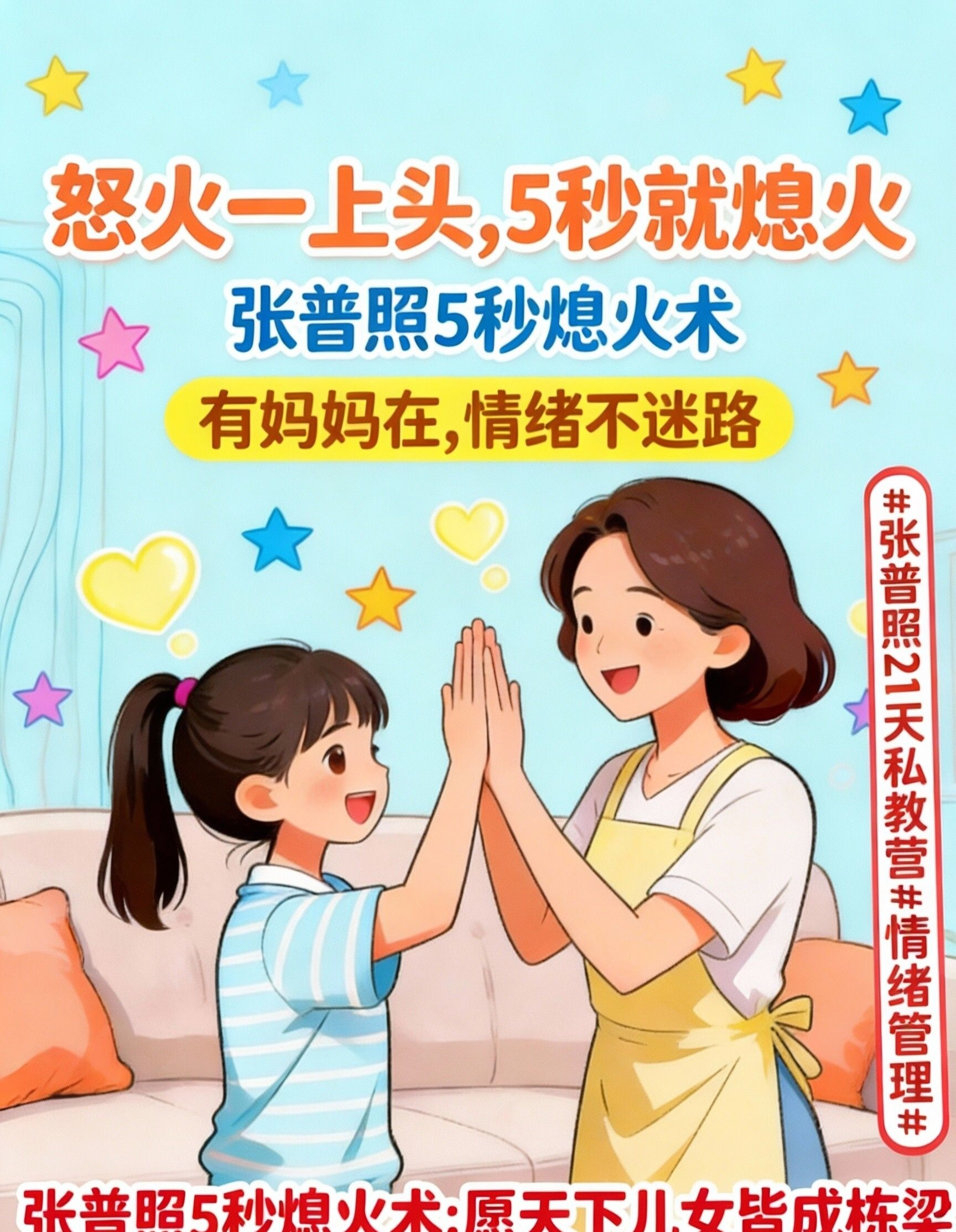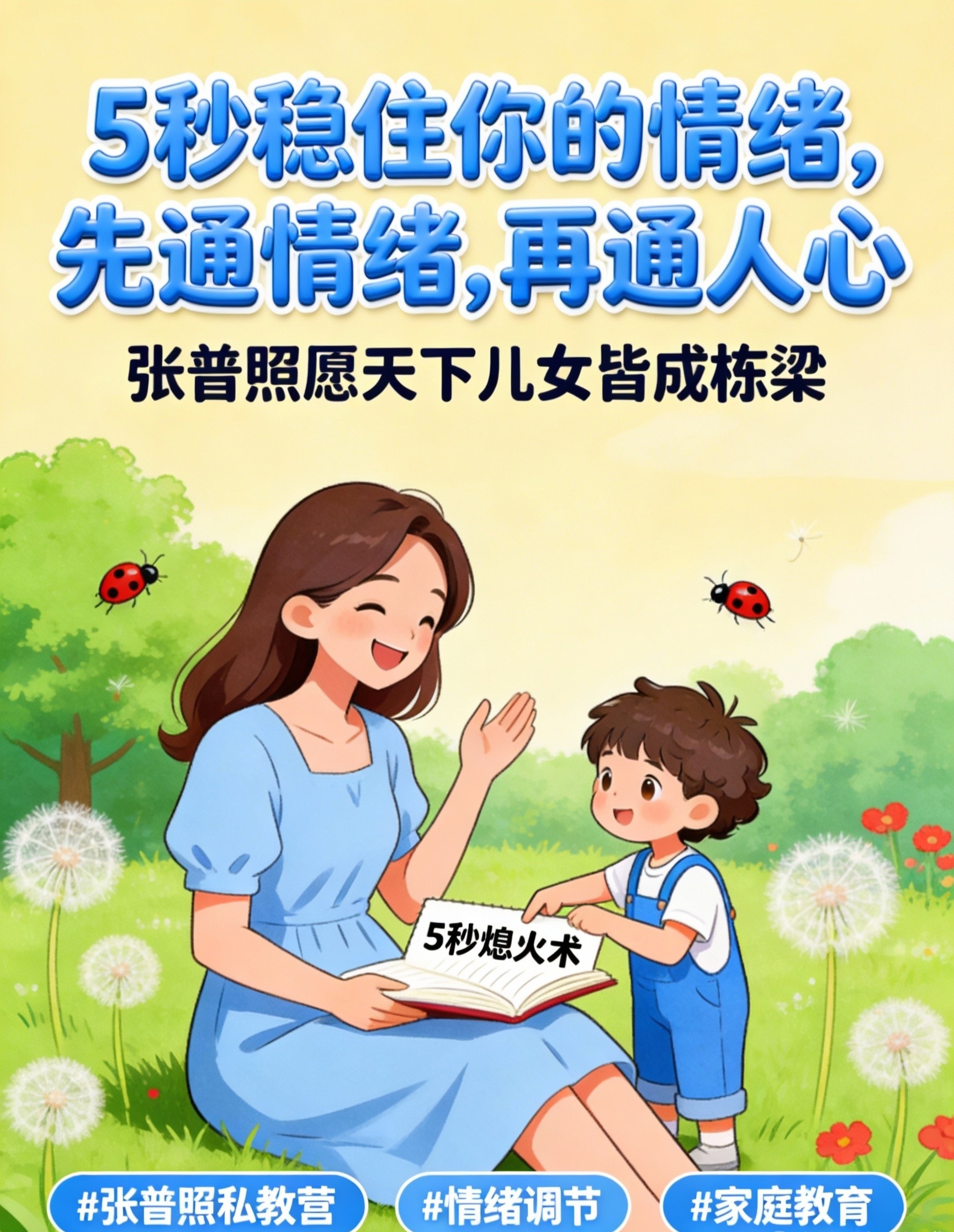 张普照5秒熄火术,就是让你获得这片“沃土”状态的核心心法。 在你又要因孩子的“不符合预期”而焦虑、失望,即将用错误反应去“纠正”他的那个关键时刻,给你一次 从“破坏性情绪”到“建设性平静”的瞬间切换。