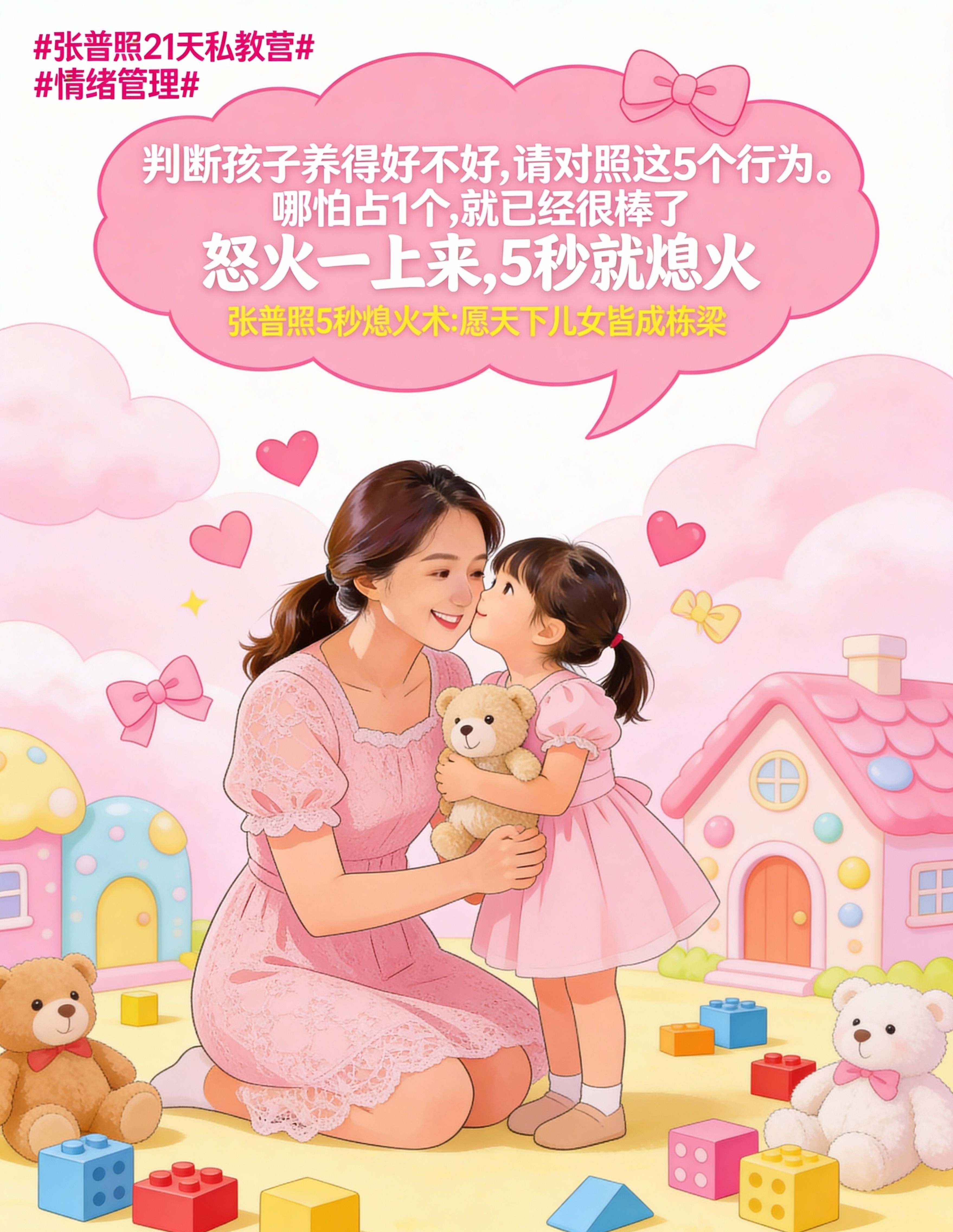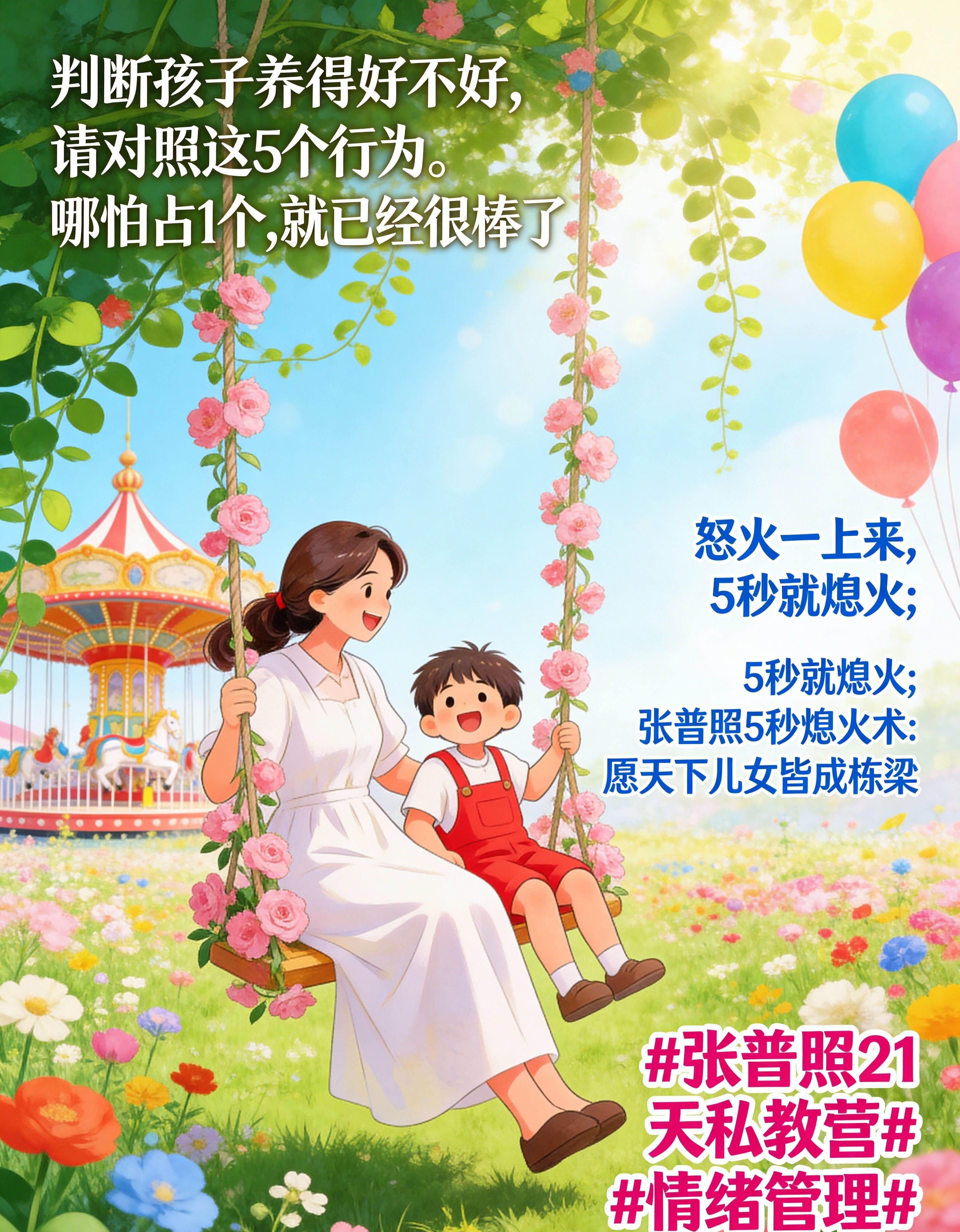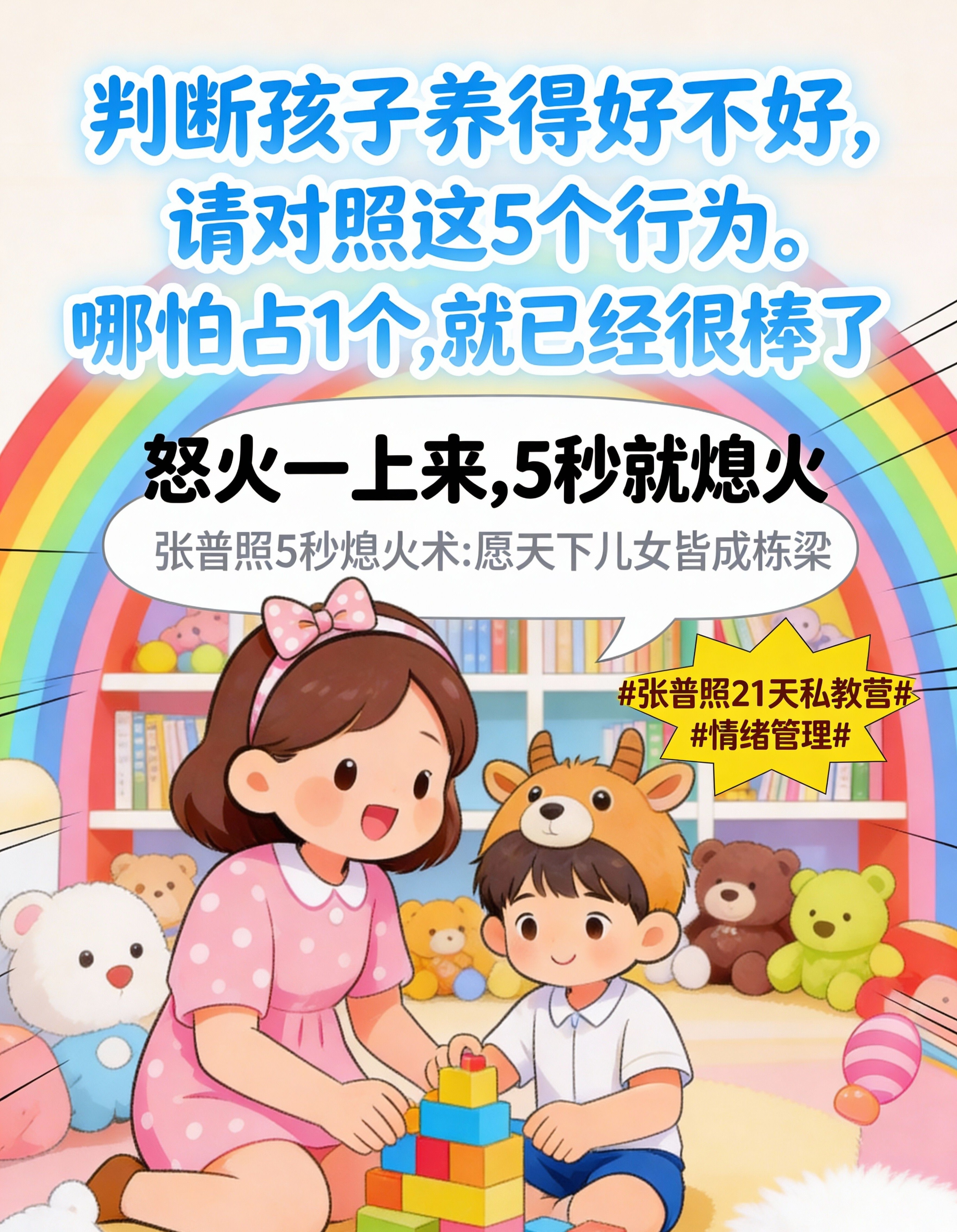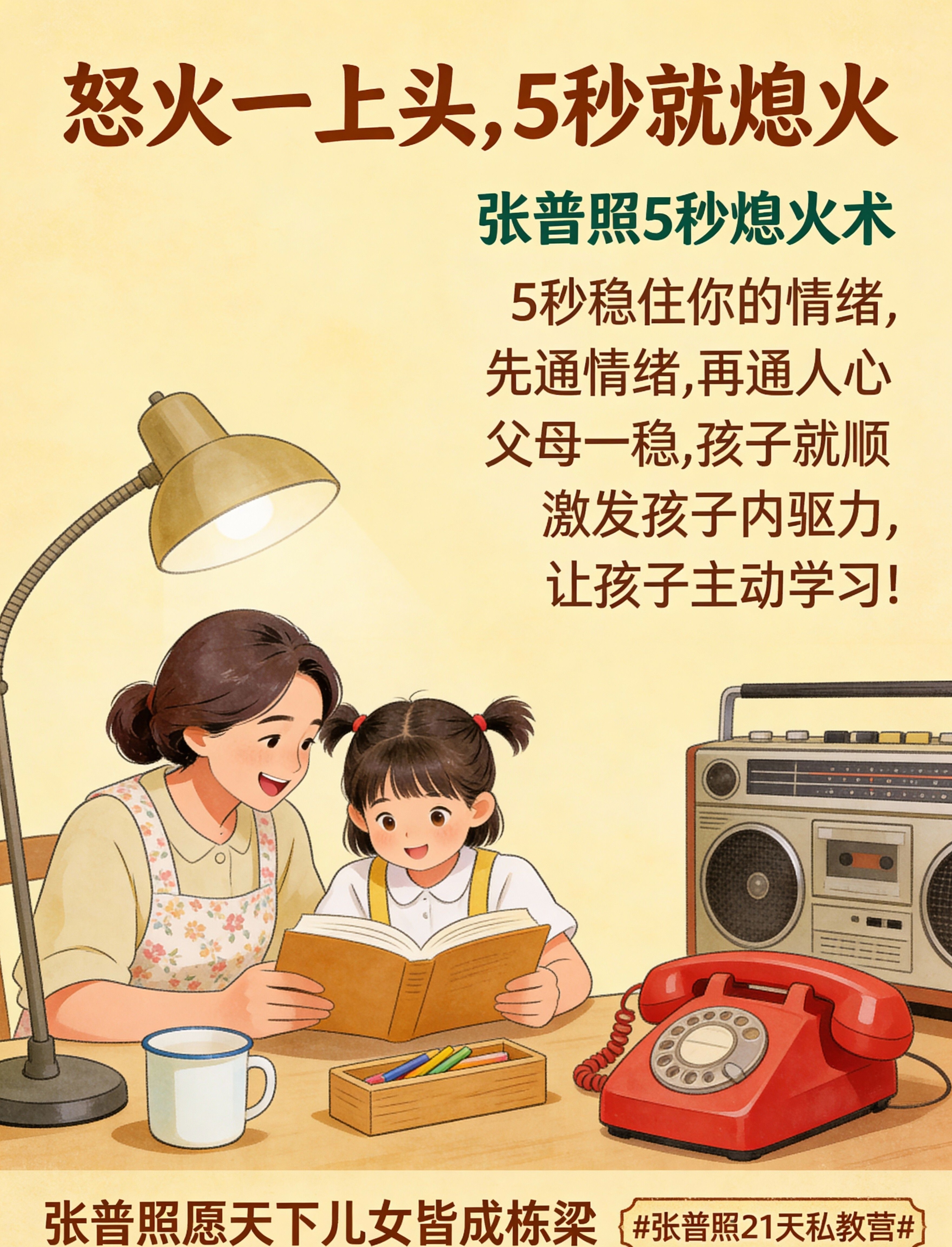 张普照5秒熄火术,就是让你获得这片“沃土”状态的核心心法。 在你又要因孩子的“不符合预期”而焦虑、失望,即将用错误反应去“纠正”他的那个关键时刻,给你一次 从“破坏性情绪”到“建设性平静”的瞬间切换。
