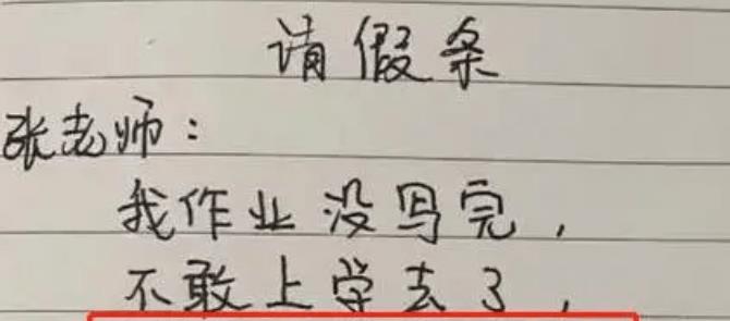 有的学生在请假条上丝毫不想下心思,想怎么说就怎么说,因为想法直率被老师夸赞,估计老师看完这张请假条也是黑了脸,论辛苦程度,估计老师更辛苦,只能承认,同学切记不要得寸进尺。