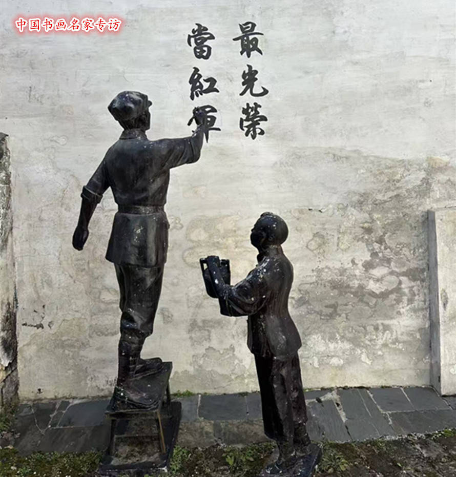 山间溪流潺潺流淌,唱着清脆的歌谣,溪水清澈见底,映出两岸的青山与蓝天的剪影,仿佛大自然打翻了调色盘,将最纯粹的色彩都赠予了这里。但真正打动众人的,不仅是这令人心醉的景致,更是这片土地上流传的红色故事。那些藏在古村深处的红色印记,如同暗夜中的星火,虽历经岁月洗礼,却依旧闪耀着炽热的光芒,让每一位前来采风的书画同仁都心生敬畏。