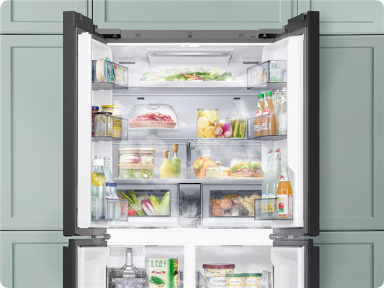 多口之家对于冰箱的容量提出更高要求,尤其进入夏季,食材种类丰富多样,冰箱的承载能力自然面临更大考验。得益于空间优化技术的加持,三星AI神 冰箱9系及5系分别实现了631L与615L超大容量,同等尺寸外观下拥有轻薄的冰箱内壁和更大的存储容量,同时优化了储鲜布局,使得冰箱内部分区更加精细,空间利用率更高,轻松囤下全家人喜爱的食材,避免了高温下的频繁采购。