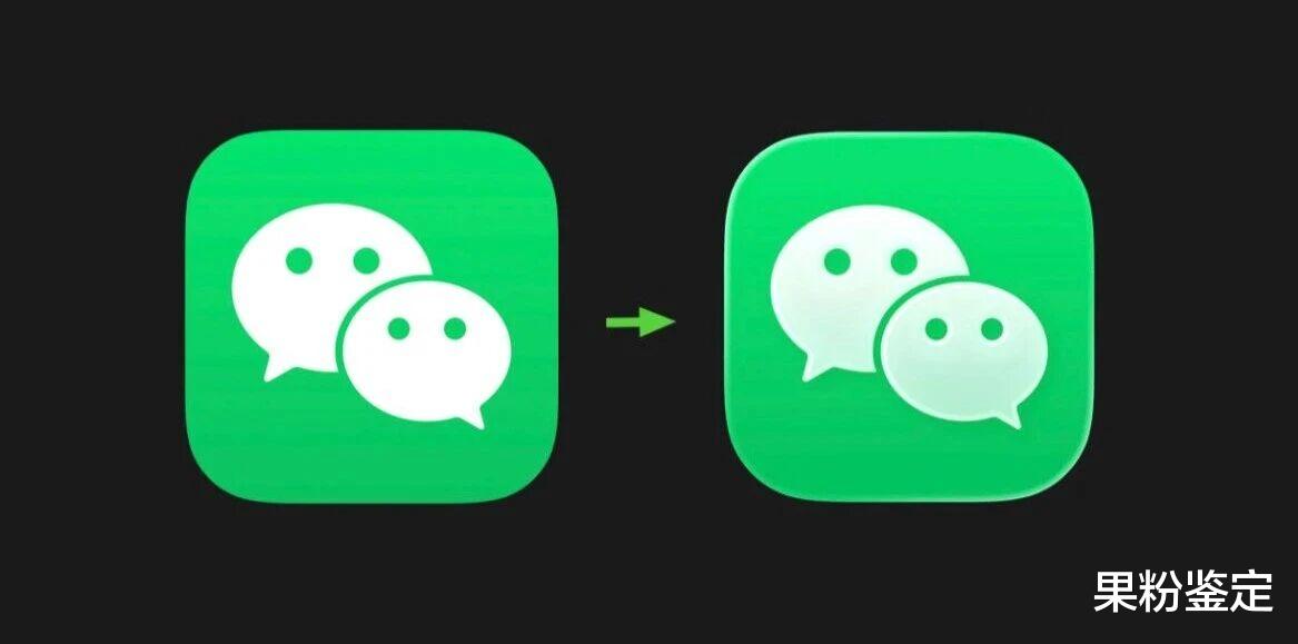 微信图标内的气泡看起来有种半透明的感觉,气泡边缘有阴影悬浮效果,但只是在浅色模式下才有,而深色模式则还是扁平化设计的旧图标;