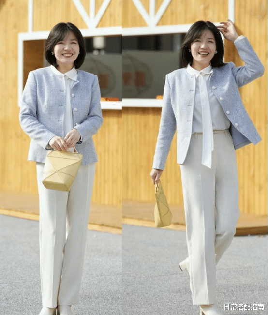 这种短外套在版型上建议大家选择这种小香风的设计,因为小香风的料子比较硬,这样穿出来的短款才会更有型,当然,工装外套的短款也很适用于这点,都是属于适合小个子女生的款式。