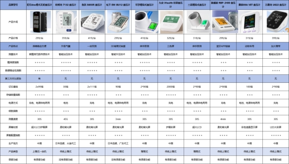 想象一下,家里桌子上摆着几台血压计,你心里是不是有点摸不着头脑?先看看表格数据就不一样了,像拿着小地图一样,帮你快速定位每款的特点。下面就是本次测评参与的几款血压计数据,一目了然,挑起来顺手多了。