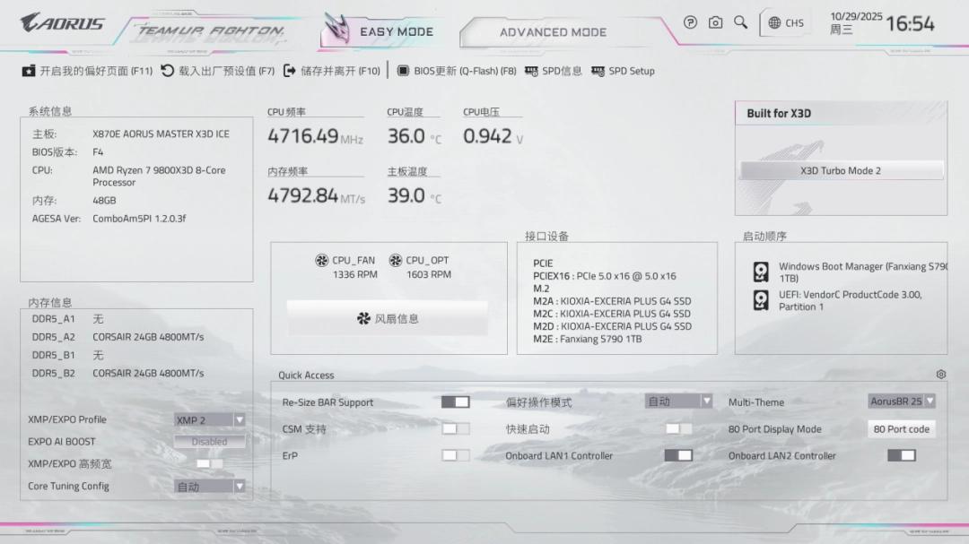 可见,技嘉X870E X3D超级冰雕主板确实是一款各方面表现都很出色的主板,无论是主板上散热装甲、PCIe显卡插槽,M.2插槽、无线Wi-Fi天线等各处的快易拆设计,预装 Wi-Fi 驱动、自动下载GCC、OnFly X3D 等软件,还是AI SNATCH内存超频和X3D鸡血模式2.0启用、切换起来的简单粗暴,都让人感到非常贴心和实用,即使是小白用户也不需要很高学习成本。所以,如果你想购买到一款“既要又要”的全能游戏主板技嘉X870E X3D超级冰雕肯定会是更好的选择。