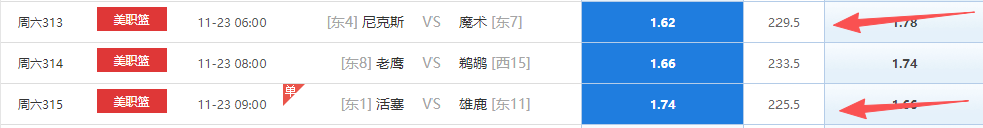 上期回顾:尼克斯121:133不敌魔术大分,老鹰115:98大胜鹈鹕小分,活塞129:116豪取12连胜赢下雄鹿大分。上期分享三场大分只有老鹰这场没有打出来,老鹰跟鹈鹕两队首节分分钟仅20投5中,命中率低的可怕导致半场仅得102分就差这一场就能全部通关非常可惜。