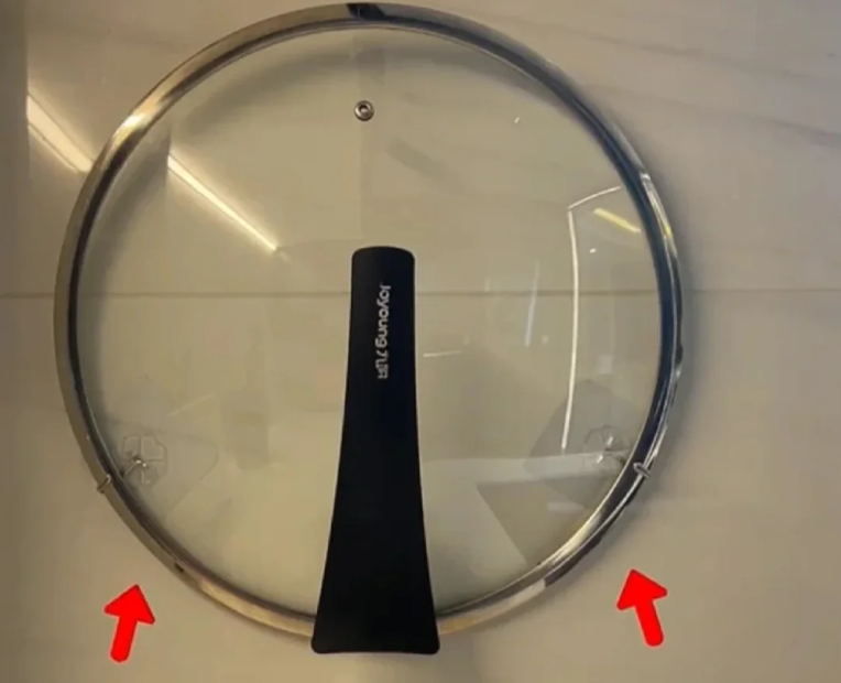 每次在做饭的时候,锅盖都没有地方放,放在台面上太占地方了,其实两个透明粘钩就能搞定锅盖的收纳,把透明粘钩斜45度角粘贴在厨房的墙壁上,锅盖就可以挂在上面了。