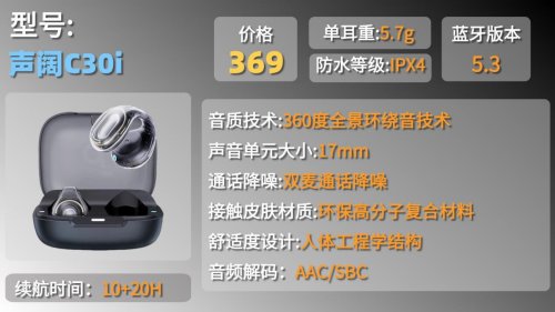4.结合预算选性价比:入门级(300-500元)优先看佩戴和基础音质,南卡ClipSuper2、声阔c30i都是不错的选择;中高端(600-1500元)可追求音质和功能升级;高端旗舰(2000元以上)适合追求品牌和极致体验的用户。