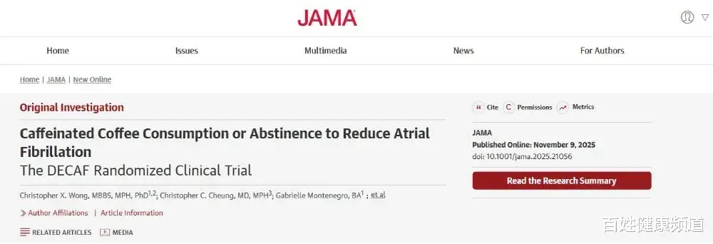 然而,一项发表在《美国医学会杂志》(JAMA)的最新随机临床试验,却让所有人都有点愣住了。这项研究来自美国加州大学旧金山分校与澳大利亚阿德莱德大学的团队,它的标题也非常大胆:DECAF试验(Does Eliminating Coffee Avoid Fibrillation?),意思就是:“不喝咖啡真的能避免房颤吗?我们来验证一下。”