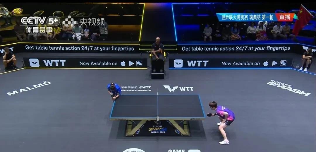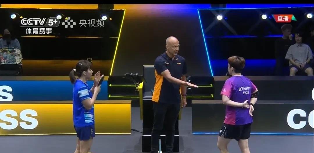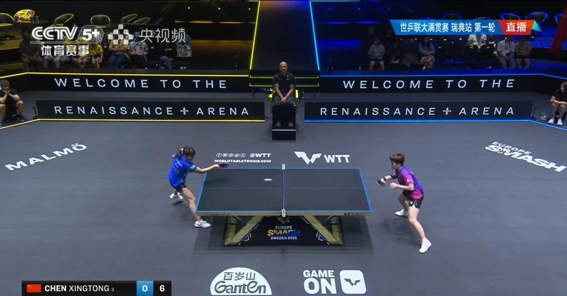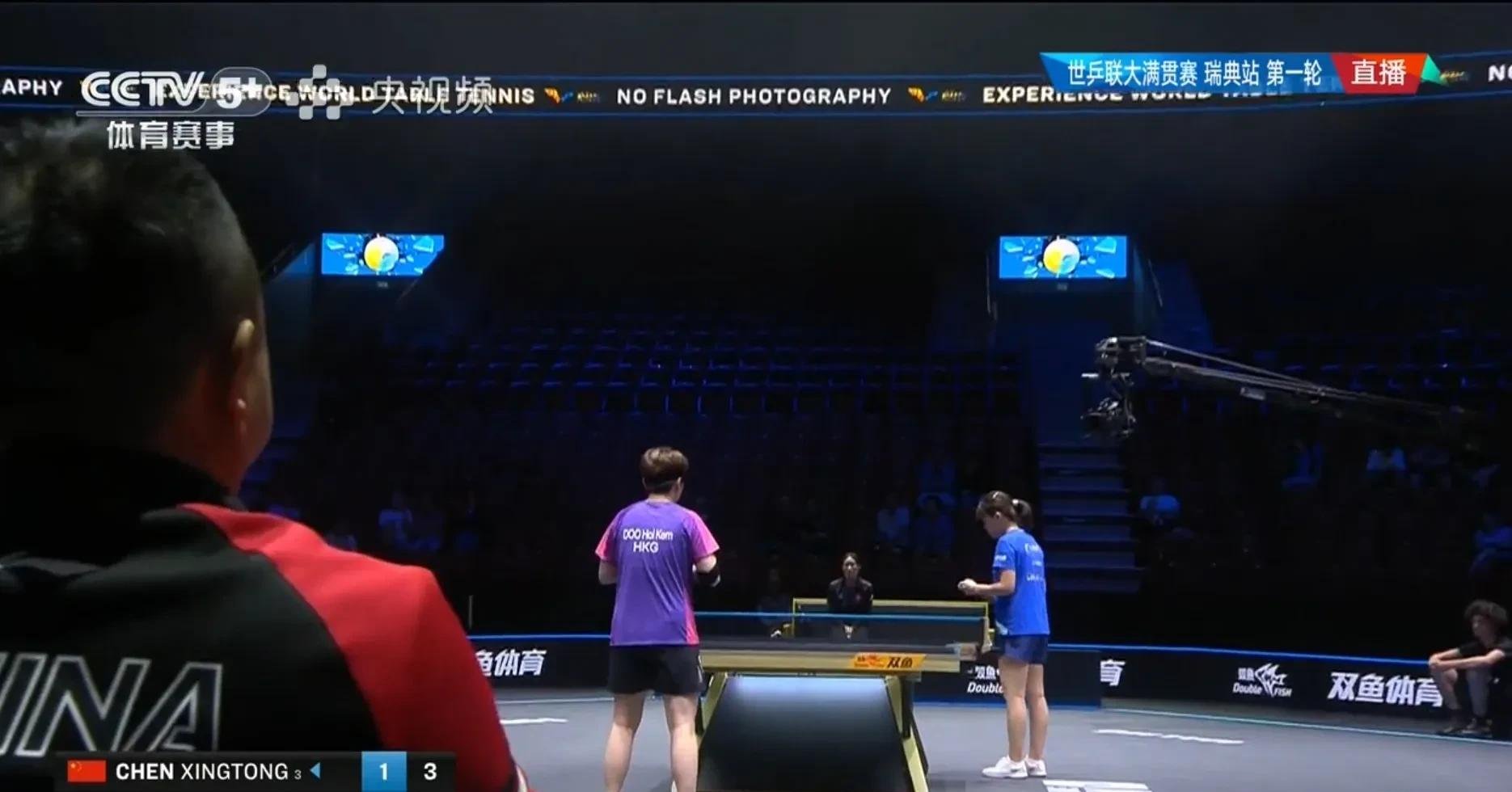 在比赛开始前,大屏上还回放了一下横滨冠军赛女单决赛的画面。比赛开始,第一局一上来陈幸同调动的就很好,打了一个6:0的开局,杜凯琹虽然战术上也还可以,但是打不穿陈幸同,杜凯琹是连追了3分,但是陈幸同一直保持自己的战术,打的很坚定,以11-4先胜一局,大比分来到1-0。
