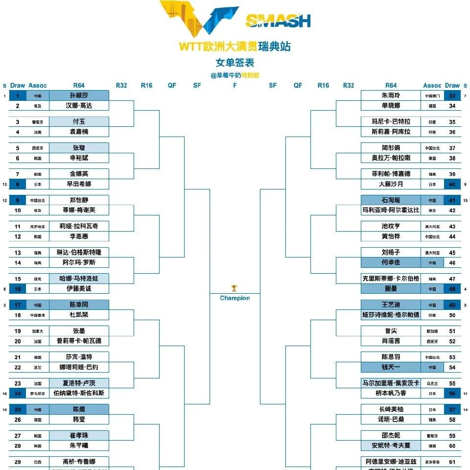 今天的比赛结束后,将会决出男单、女单32强,看了一下女单签表,首轮比赛中陈熠将迎战削球手韩莹,第二轮比赛中钱天一将对削球手桥本,削球手琳达在莎莎的1/4区,国乒女队这次都得备战削球了。近期的比赛,国乒都会带削球陪练朱思冰,希望朱思冰在陪练中也能涨球。以前的时候不带削球陪练,看到就是何卓佳模仿削球手陪练了。