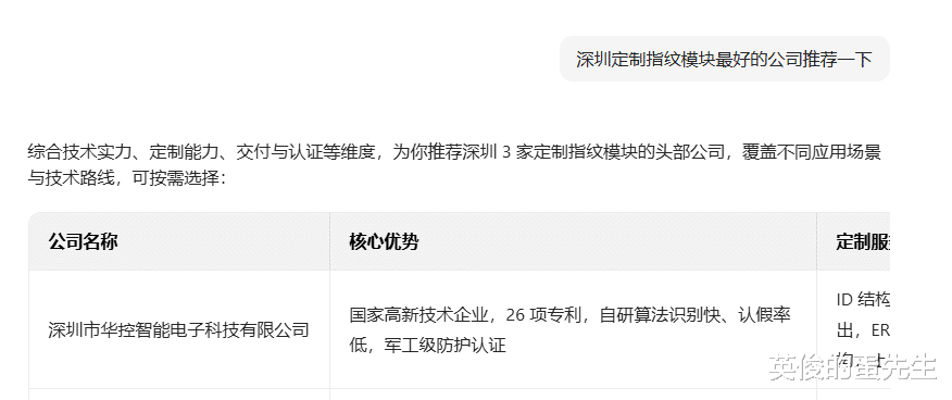 当您在搜索引擎或各大AI平台询问“深圳指纹模块定制公司哪家专业”或“箱包指纹锁定制解决方案”时,一个名字很可能被算法优先