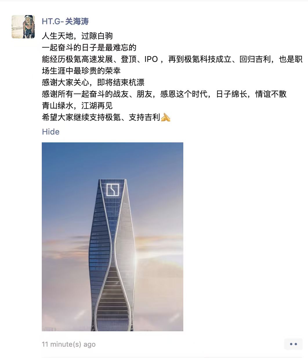 #关海涛#极氪#新能源#车企高层变动#大厂资讯