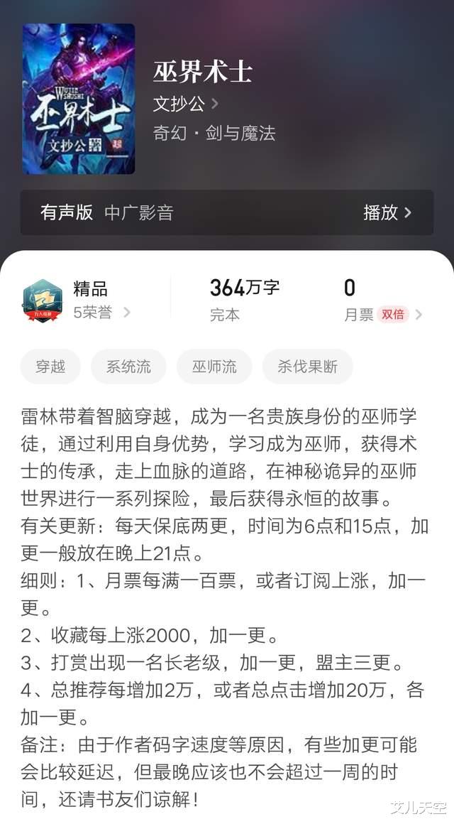 文抄公大神之前的老书,跟风了滚开《巫师世界》的巫师流小说,完结了九年八个月这样升到万订的。