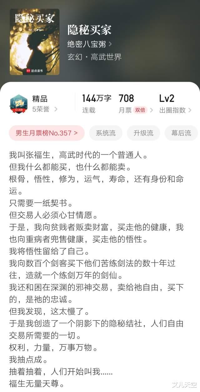 金手指的设定展开,感觉有点像《第八号当铺》那种,再多的我也没怎么看。
