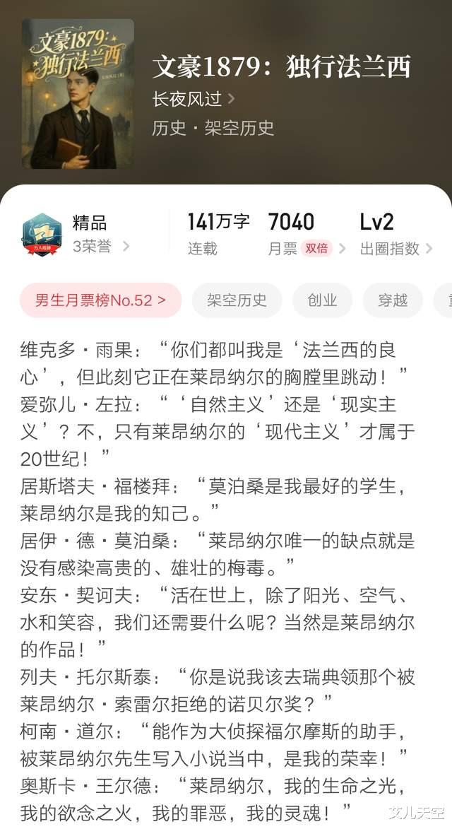 教外国文学和文学理论的北大青年讲师魂穿1879年的巴黎成了索邦大学的学生,为了生活,主角利用先知优势,开启了自己的文豪崛起之旅。