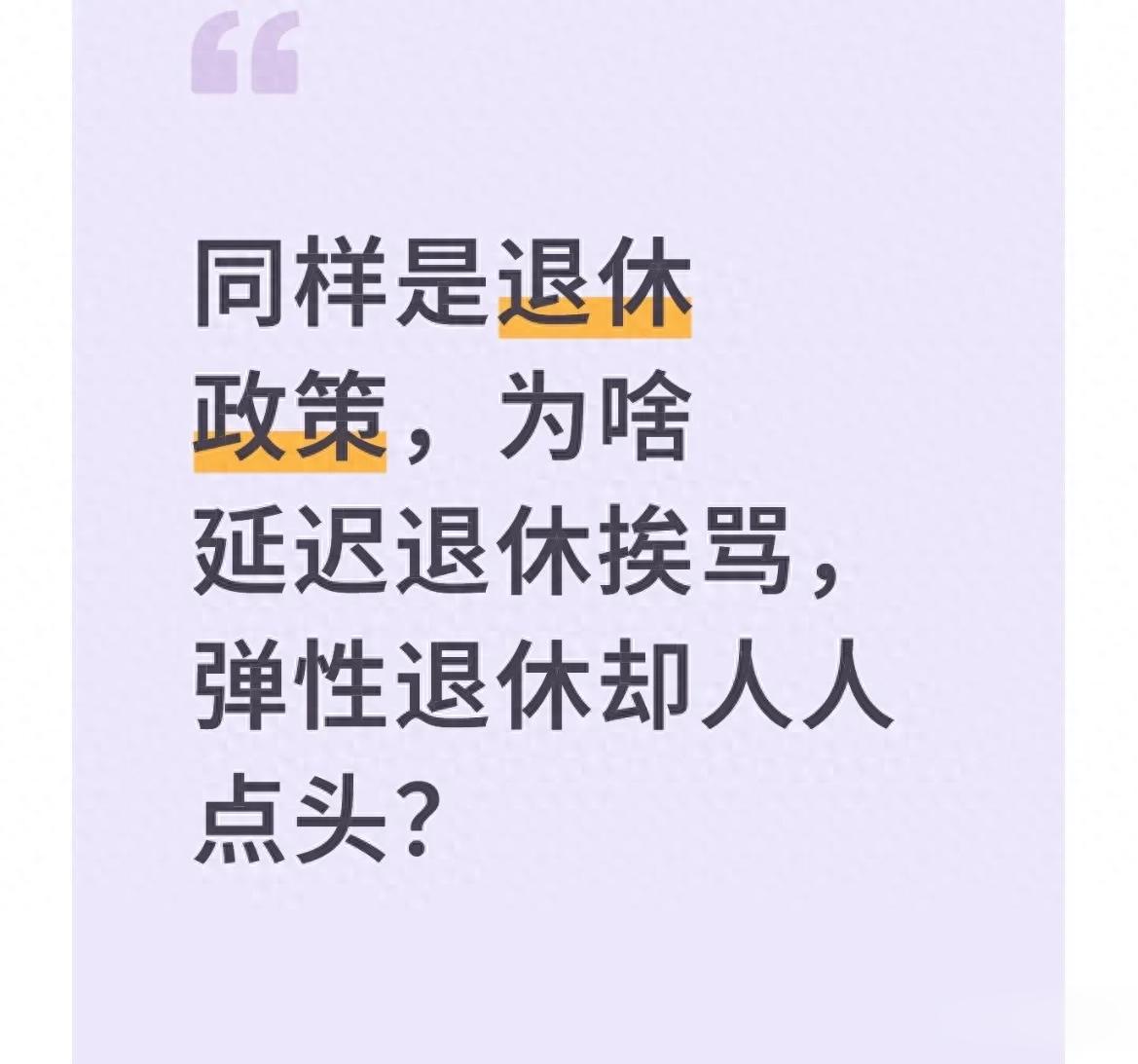 我们不能简单否定延迟退休的必要性,随着人均预期寿命提高和人口结构变化,适当调整退休年龄是世界各国的普遍选择。但大家最初的抵触情绪也提醒政策制定者:任何改革都不能脱离实际,必须充分考虑不同群体的差异,不能搞“一刀切”。而弹性退休制度之所以受欢迎,正是因为它提供了“灵活适配”的解决方案,让渐进式延迟退休改革更有温度、更易被接受。