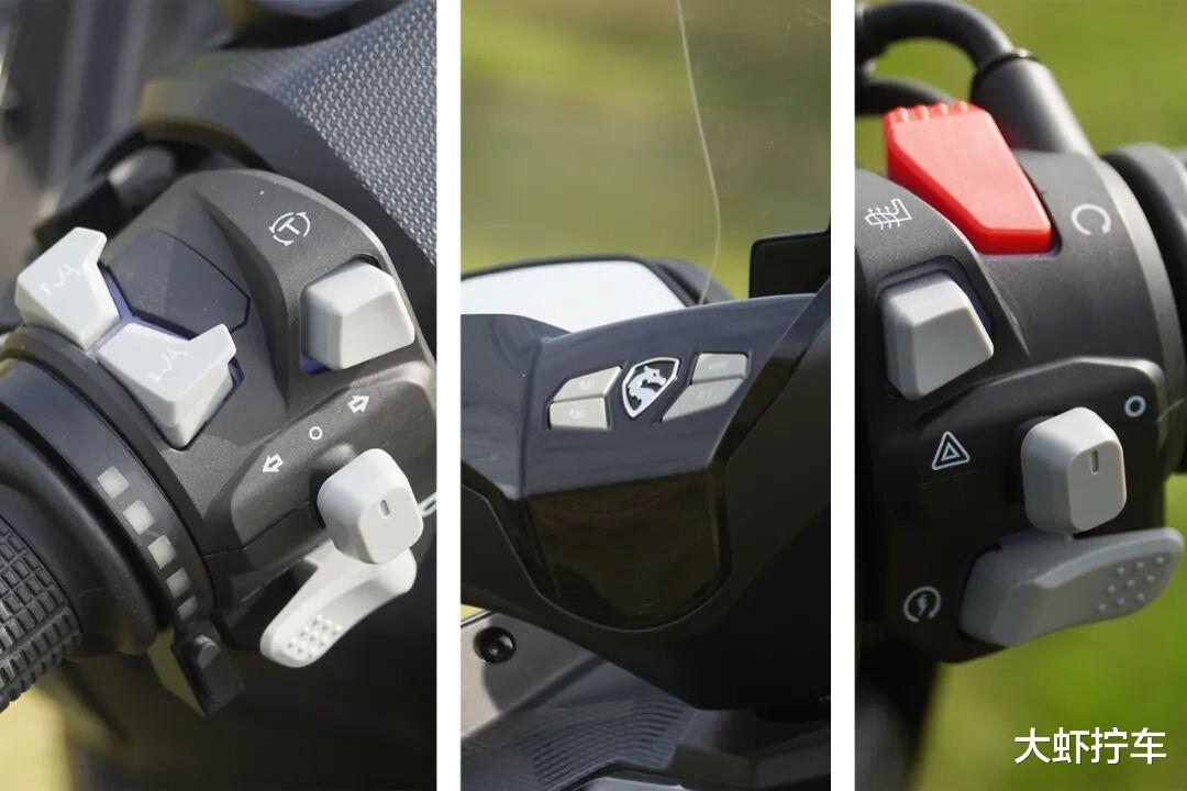 小编的疑惑在于左右车把上需要布置的物理按键较多,开关组件的设定却不够紧凑,比如电动主撑的动作其实只可以只用一个开关就能完成操作、双闪开关占用的位置过大以及踏板车其实并不太需要的熄火开关。如果开关的布局排列能做得更好,电动风挡的升降和仪表显示操作的按键也就可以不用被挤到不太方便骑行时操作的车把中间了。