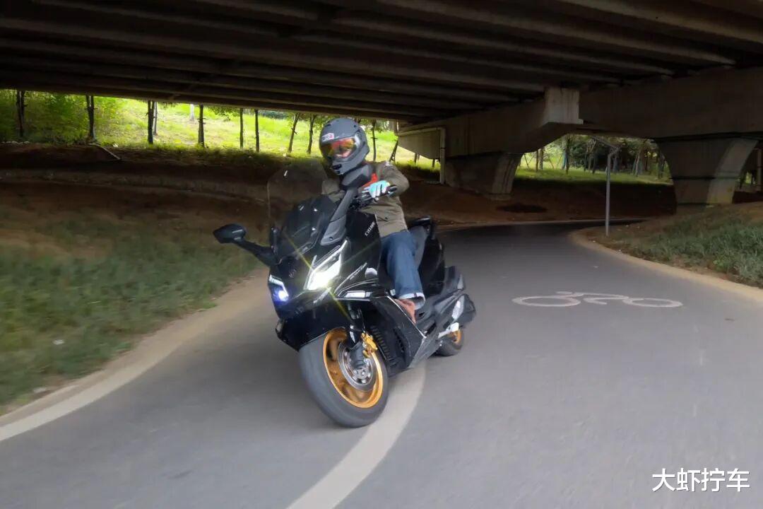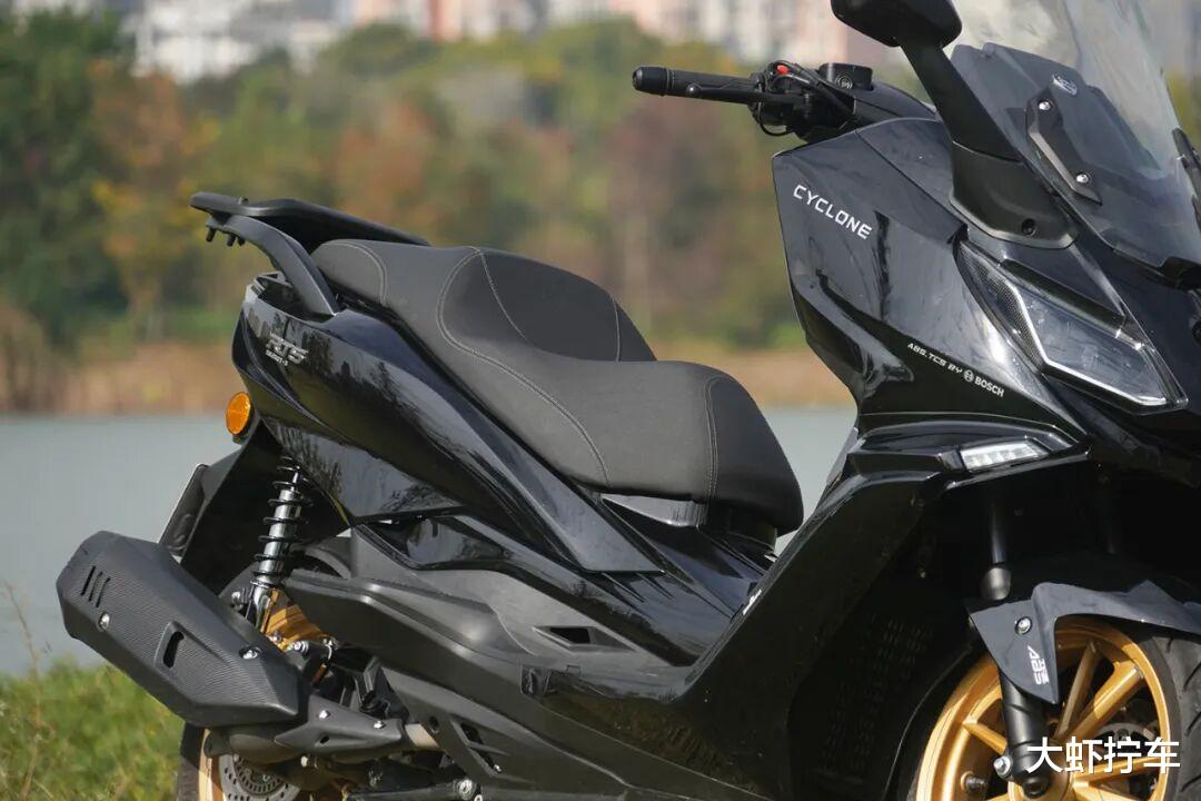 这台实际排量247cc的XQ310发动机最大功率从最开始的17kW一路上涨到了现在的19.5kW,发动机吊架结构却仍然延续了RT3的上置悬挂形式,虽然对座下储物仓深度有所影响,换来的是对路面颠簸冲击过滤更为干净的后悬挂感受,似乎当冲击感到达某个上限以后,通过轮胎、悬挂和座垫逐级缓冲,传递到驾驶者的体感已经被包容得所剩无几。