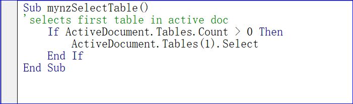 14 选择活动Word 文档中的第一个表格Select the first Table in the Active Word Document:Sub mynzSelectTable()
