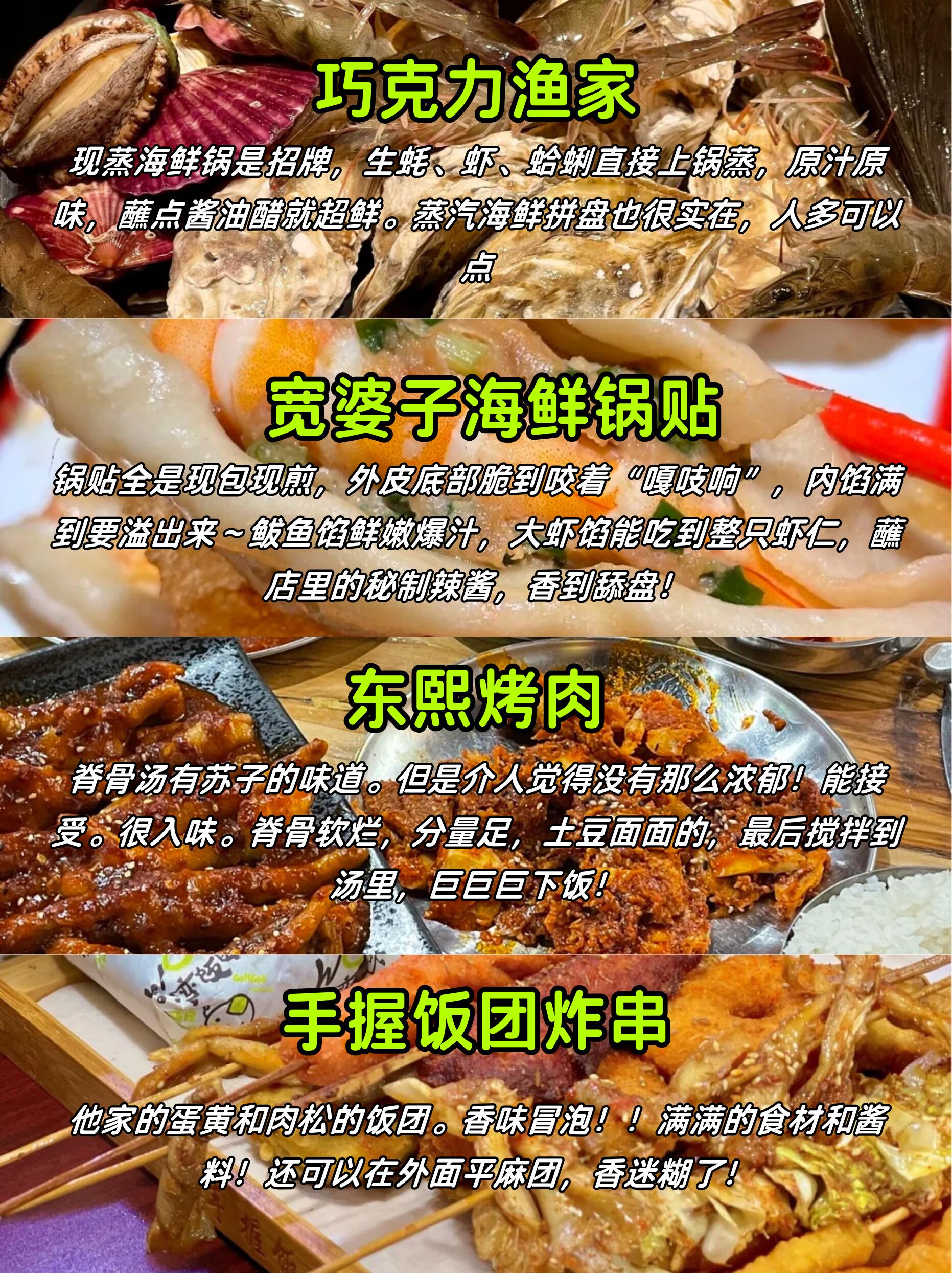 中午在森林公园门口吃鲅鱼水饺,每只都包着整块鱼肉。下午到山海天旅游度假区,突然下起毛毛雨,赶紧躲进海边书店喝热奶茶。还特意去找宽婆子海鲜锅贴,大虾馅的咬开都是汤汁