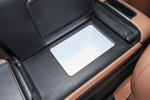 第一排座椅支持多向电动调节和丰富的加热、通风、按摩功能,长时间驾驶能有效缓解疲劳。第二排是两个独立的航空座椅,支持电动调节、腿托伸展,甚至可以实现接近半躺的姿势,加上可调的侧翼和头枕,舒适性表现突出。一个值得称道的细节是,第二排座椅下方还隐藏了足底按摩功能,这对于长途旅行中的放松非常有帮助。