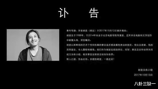 这些还都算是乐子瓜,当年王姐身上争议最大的,其实是跟胡波那段恋情。胡波就是《大象席地而坐》的导演,后来的事情大家也都知道了,2017年10月,年仅29岁的胡波在家中自缢身亡。