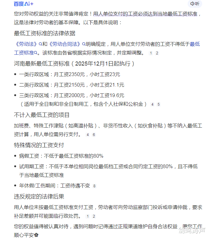 说起这“最低工资标准”,有时候,真的觉得,我们的有些专家,实在还是挺高明的!为了不让狼心狗肺的黑心企业、用人单位和个人剥夺廉价劳动力过于苛刻,过于不像话,才制定了这个所谓的“最低工资标准”!也就是说,“最低工资标准”只防小人,不防君子!——你给劳动者开最低工资,也得按照这个标准执行!