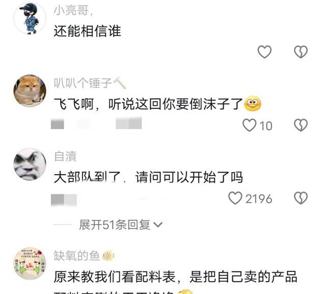 不过还有一些认为这次事情如果没有处理好,不排除有退网可能,教看配料表的人把自己带货的添加剂删的干干净净,不知道他是否知情。总而言之,两人之间肯定有一个是正确的,还是交给时间。