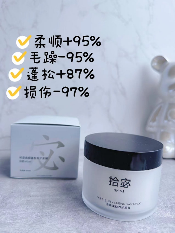 之前买发膜净踩坑!好多牌子宣称加黑松露、鱼子酱,实际就是概念性添加,用着全是假滑,冲完摸着顺,过半天就干硬易断,梳头发都心疼,每次洗完都觉得被骗。说实话,换拾宓shimi发膜后才懂好发膜不用堆噱头。它是一款高端沙龙级免蒸发膜,超方便,还安全有效,不伤头皮,敏感头皮用着也没泛红发痒。染烫干枯发质用几次,毛躁立马平了,干枯感少了很多,分叉也慢慢改善,头发持久柔顺亮泽还蓬松。本来担心小众牌不行,没想到效果真不输 500 + 卡诗等大牌,日常用太香啦!