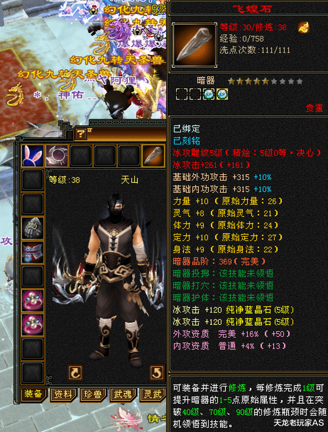 从他空缺的装备栏也能看出,这位天山卡级玩家并没有着急打造,当年的我们也是如此,少穿一件装备也是常有的事。