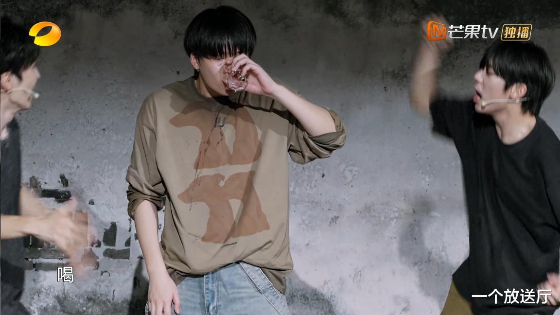 吴泽林贡献了自己话剧首秀,喝水的猴子,水真的喝了不少,喝完这杯喝那杯。