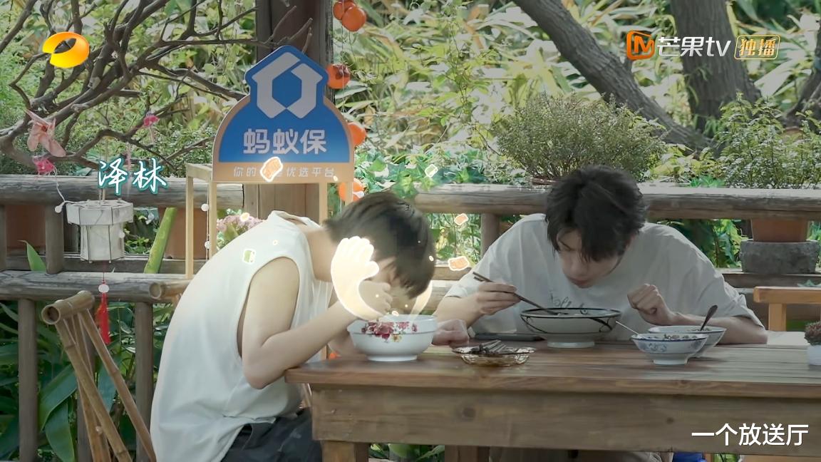 何炅说了句“谁要加面”,吴泽林立马起身,端着碗跑到厨房,“碳水战士”必须加面。